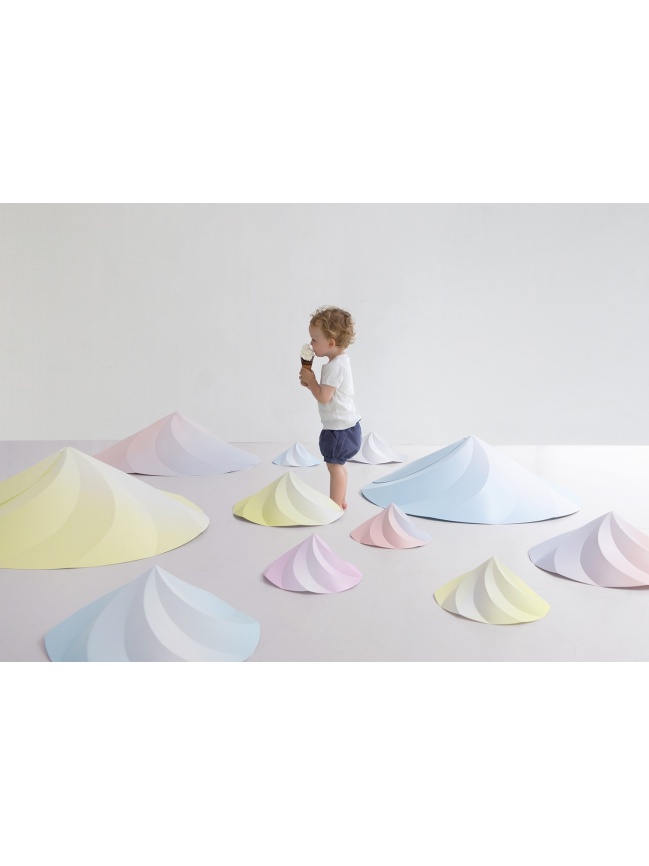 The Chantilly lamps by Constance Guisset create complex volumes based on a highly simple yet ingenious system of folds. The lampshade takes shape in the single closure movement required to assemble it. Small, large or to be suspended, the Chantilly lamps follow the delicious movement of the icemaker's siphon and enhance it through the use of subtle colours
