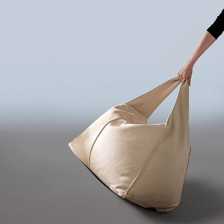 A portable ottoman that takes its cue from the world of fashion. A versatile, comfortable, handy product, thanks to its decorative shoulder strap for easy transport. Comfort is guaranteed by innovative upholstery composed of a mixture of different materials, for peerless relaxation and a constantly perfect form.