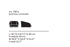 Armchair. Wooden frame covered with polyurethane foam in different densities and polyester fiber lining. Leather or fabric covers. Chrome-plated or lacquered steel base.