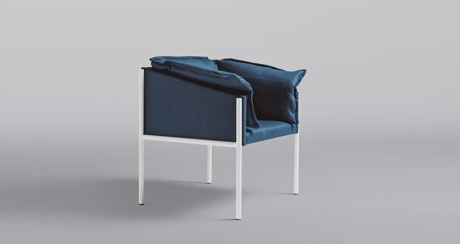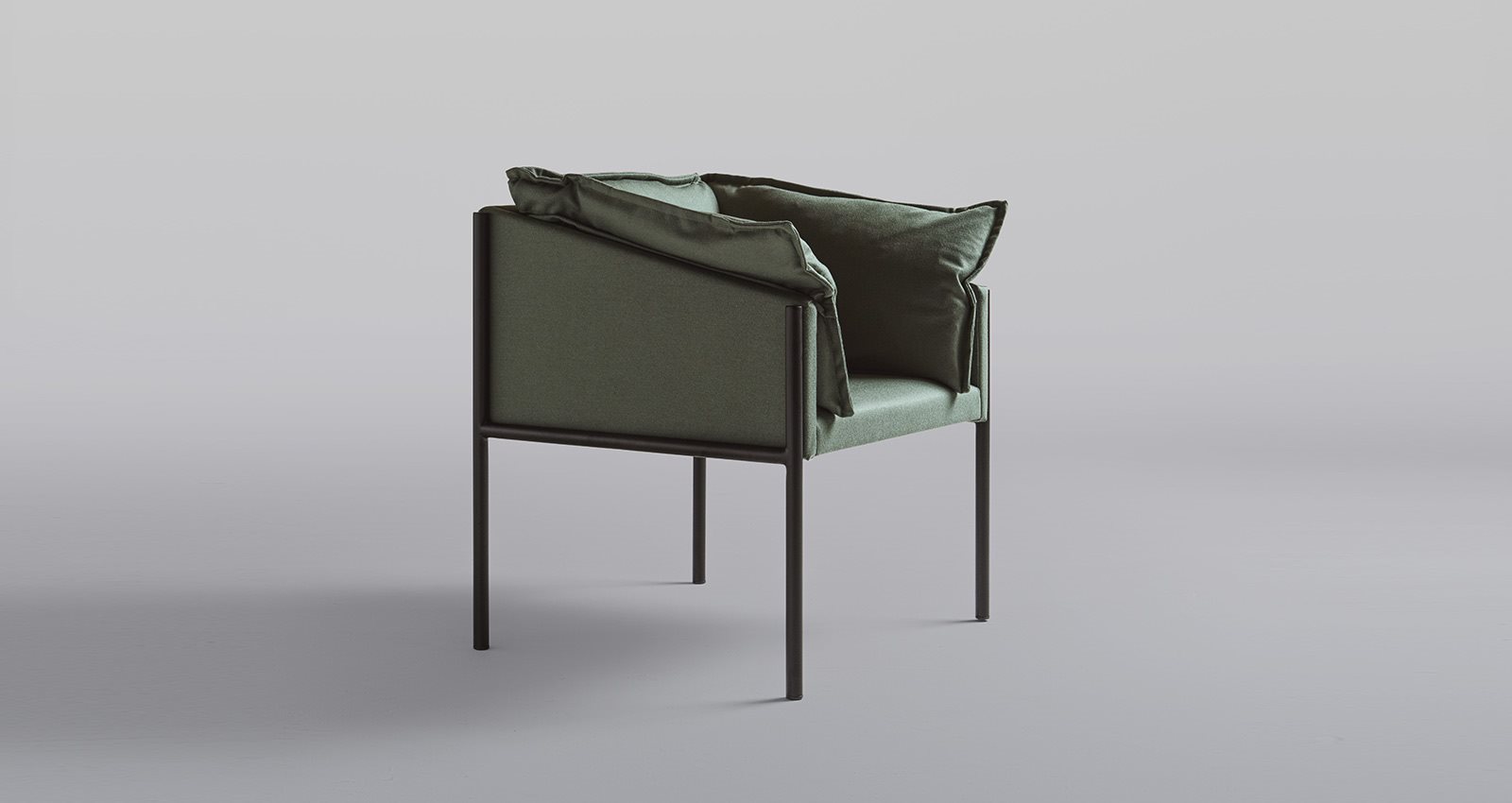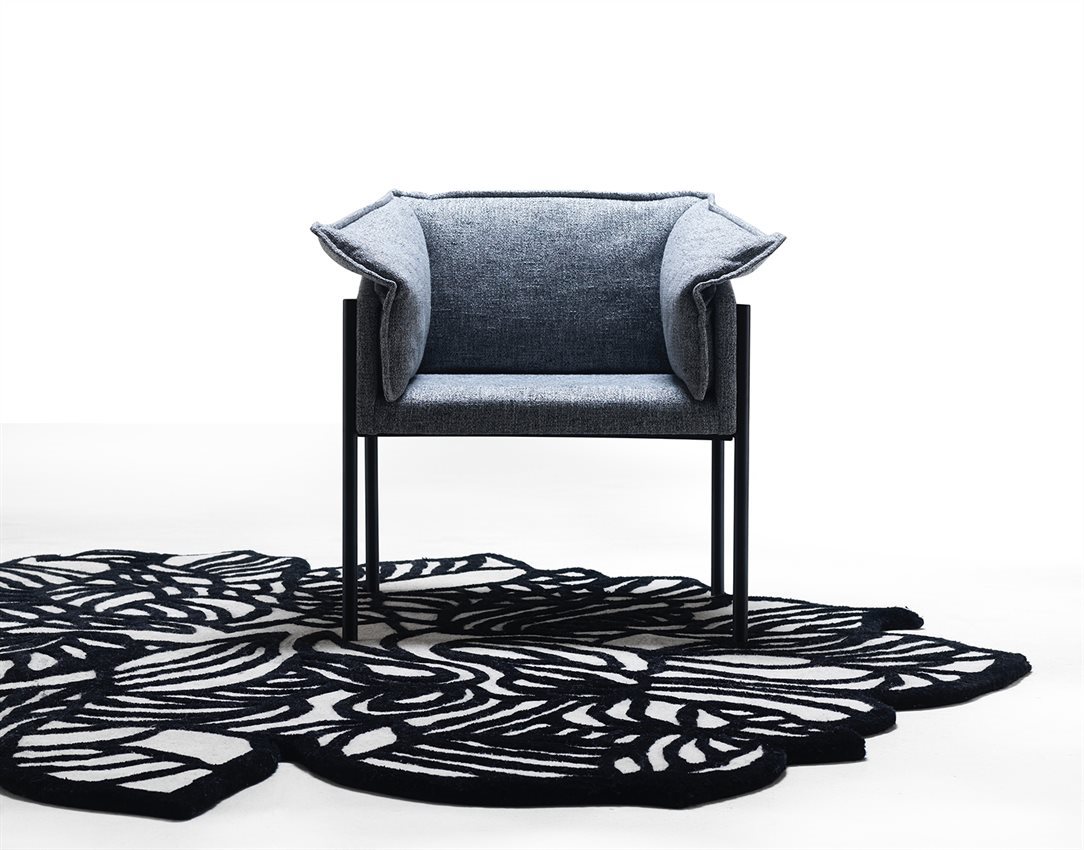 Armchair. Wooden frame covered with polyurethane foam and polyester fiber lining. Back cushion and armrests in sterilized feathers. Seat cushion in polyurethane foam and polyester fiber lining. Painted steel legs. Fabric cover.