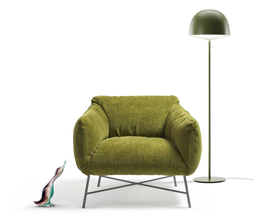 Shapes which revisit the past for the JOLIE small armchair, characterised by upholstery available in leather or fabric. The soft lines bestow a natural sense of appeal and comfort, inviting you to take a seat and relax. Simple, with a hint of originality, Jolie can be used to furnish a creative home in complete MY home collection style.