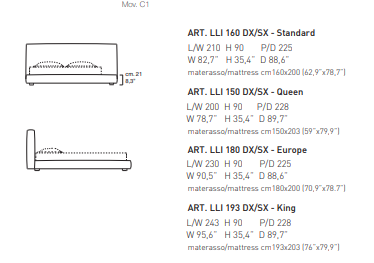 Bed. Wooden headboard and bed edge covered in polyurethane foam and polyester fiber lining. Removable fabric or leather cover. Beechwood bed slats.
