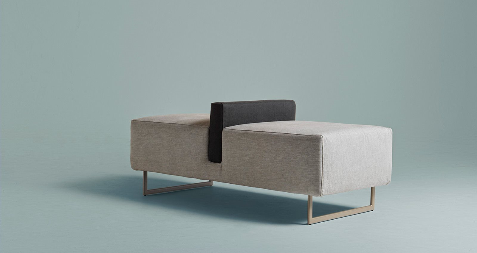 A padded two or three-seat bench with clean, essential lines. The housing for the (optional) cushion can also function as a place for magazines or objects. Ideal for residential and contract settings.
