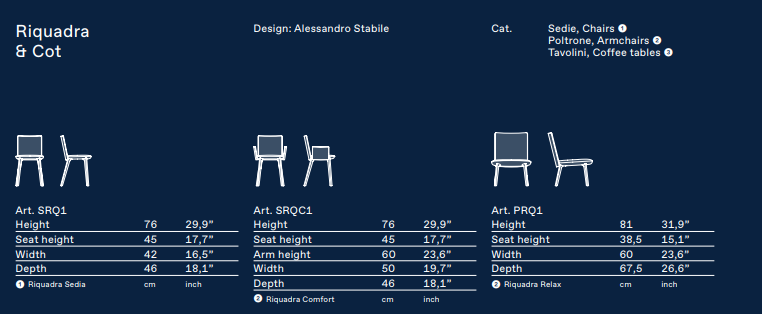 In versions with or without armrests, Riquadra explores new, original configurations through the montage of geometric forms. The circle for the seat and the square for the back have the same area, intersecting.