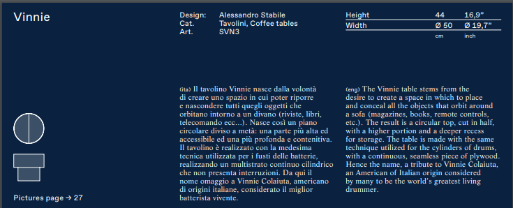 Paying homage to the great talent of Vinnie Colaiuta, one of the most famous drummers in the history of contemporary music, this new coffee table reproduces the shape of a drum cylinder, and is made with precisely the same technique, creating a seamless plywood shell.
