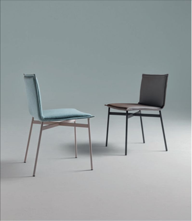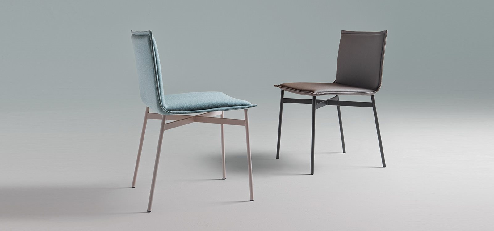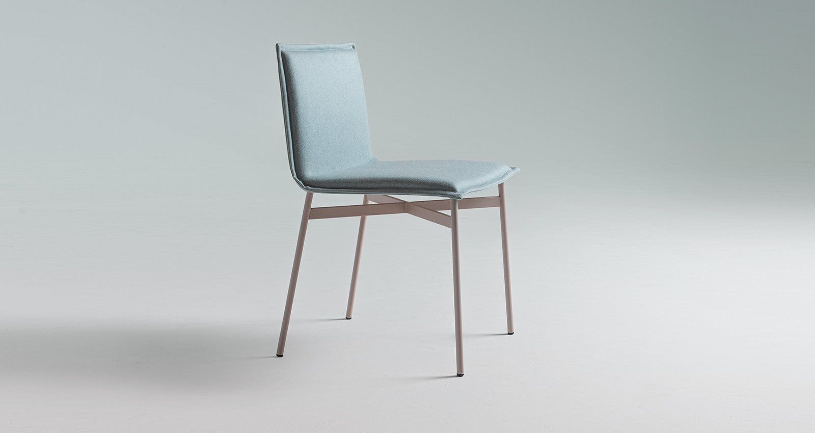 The reinforced steel legs are connected using a linear, crossover structure. This chair with its minimalist shape is perfect for both home and work environments.