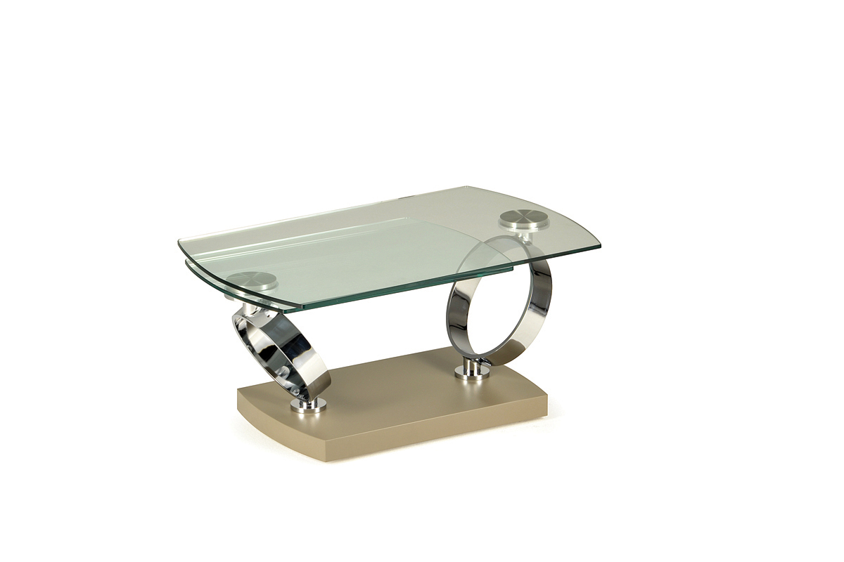 TAVOLINO ESTENSIBILE CON PIANI GIREVOLI SINCRONIZZATI IN CRISTALLO BASE IN LEGNO E SUPPORTI IN ACCIAIO VERNICIATO O GALVANIZZATO.