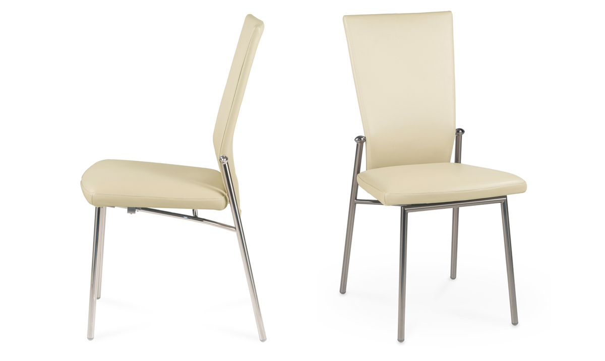 SEDIA IMBOTTITA CON STRUTTURA IN ACCIAIO CROMATO O VERNICIATO. SEDILE E SCHIENALE CON RIVESTIMENTO IN PELLE. DOTATA DI UN MECCANISMO CHE CONSENTE DI VARIARE A PIACERE ED IN MODO PROGRESSIVO LA GEOMETRIA DELLA SEDUTA.