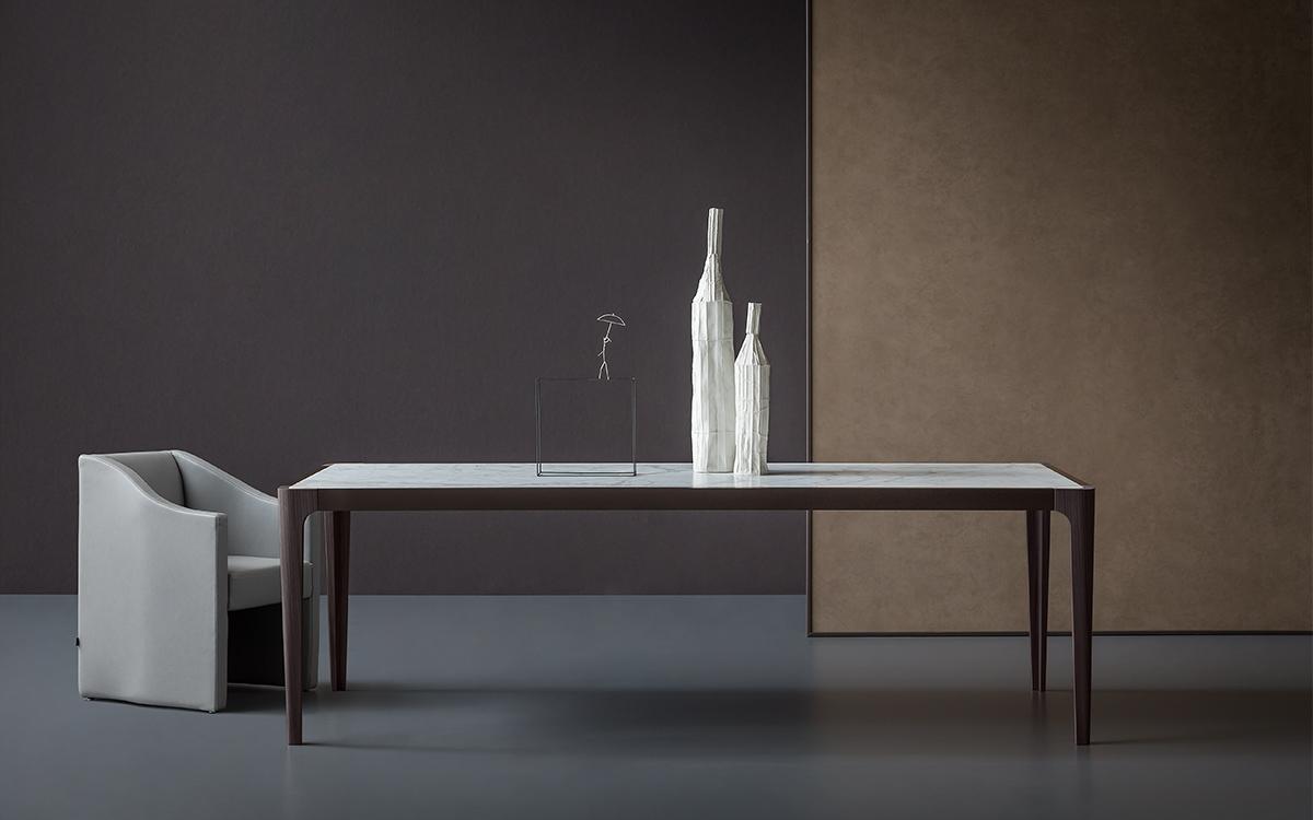 The distinctive traits of this table were inspired by the Rationalist design of the Thirties, revisited with a contemporary twist.