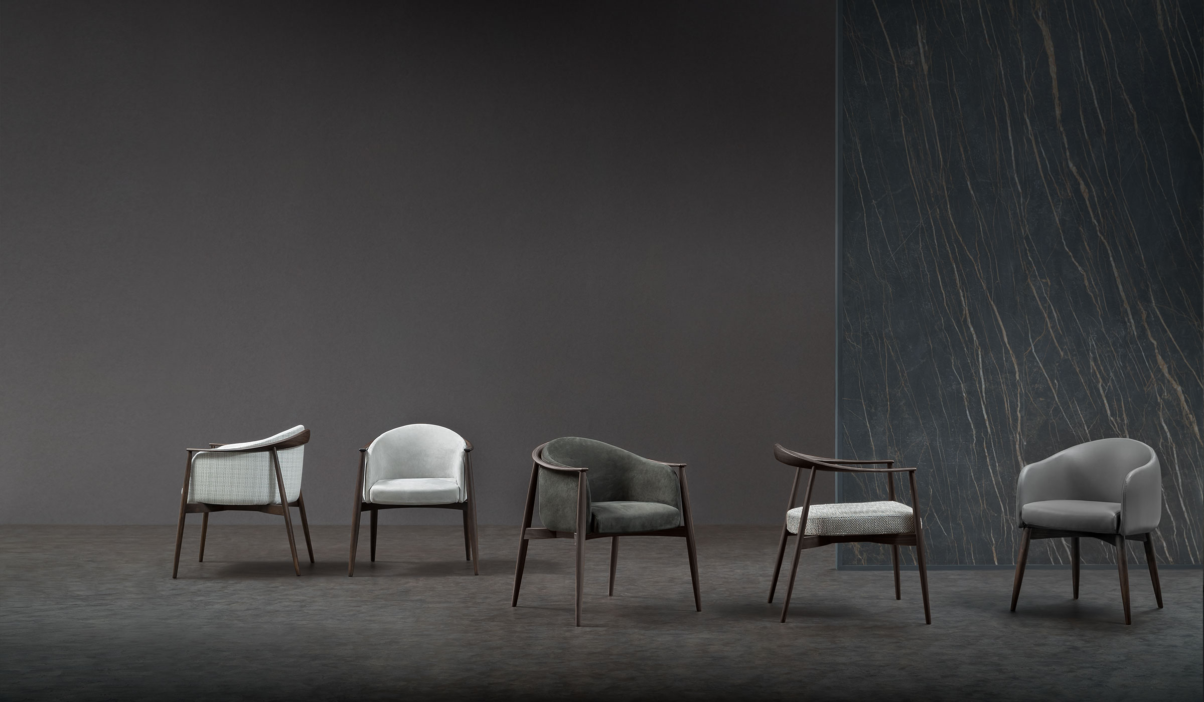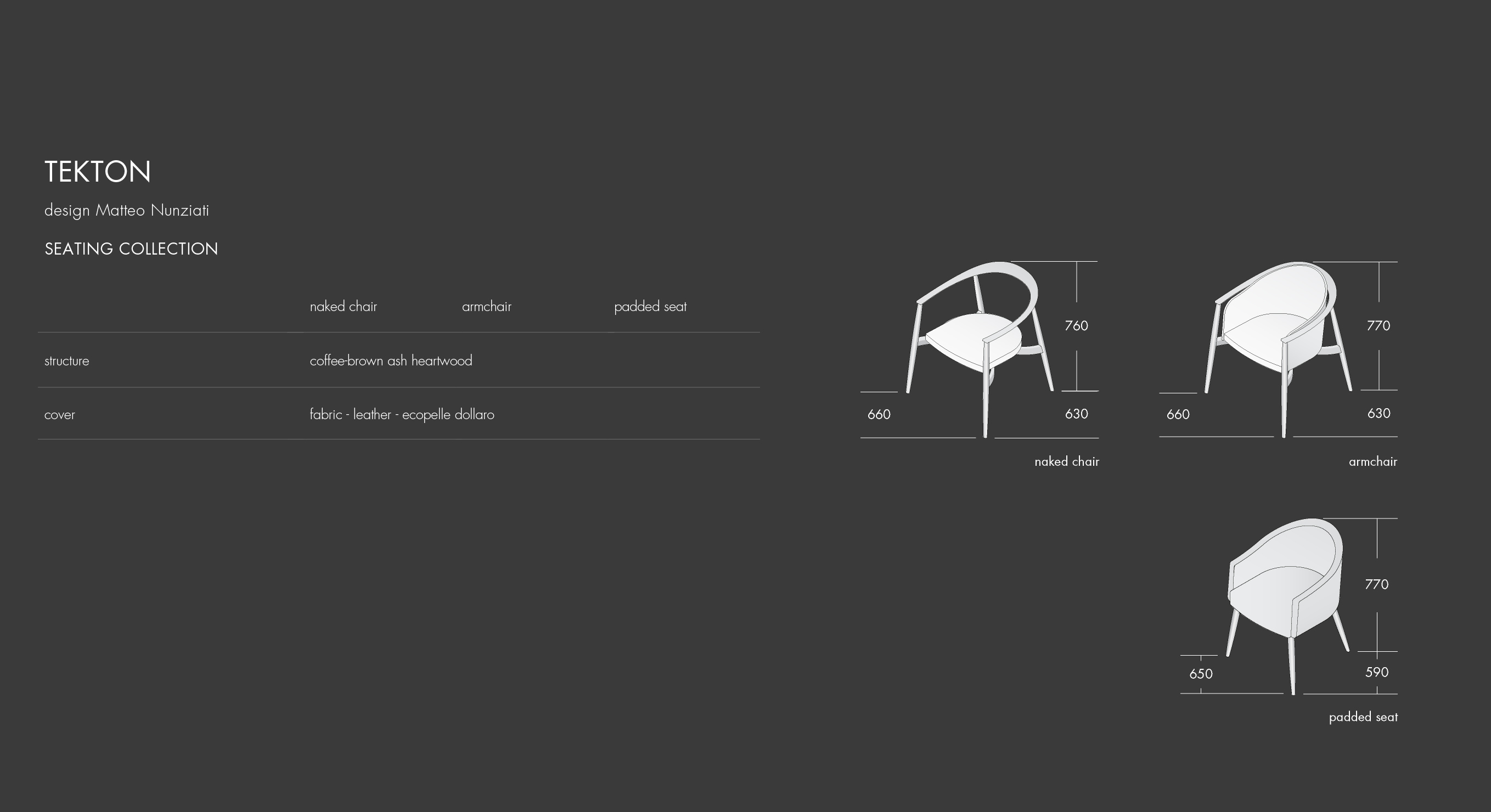 Comfort and elegance have inspired the fluid, organic shapes of the chairs and armchairs Tekton, that can be added discreetly to any context.