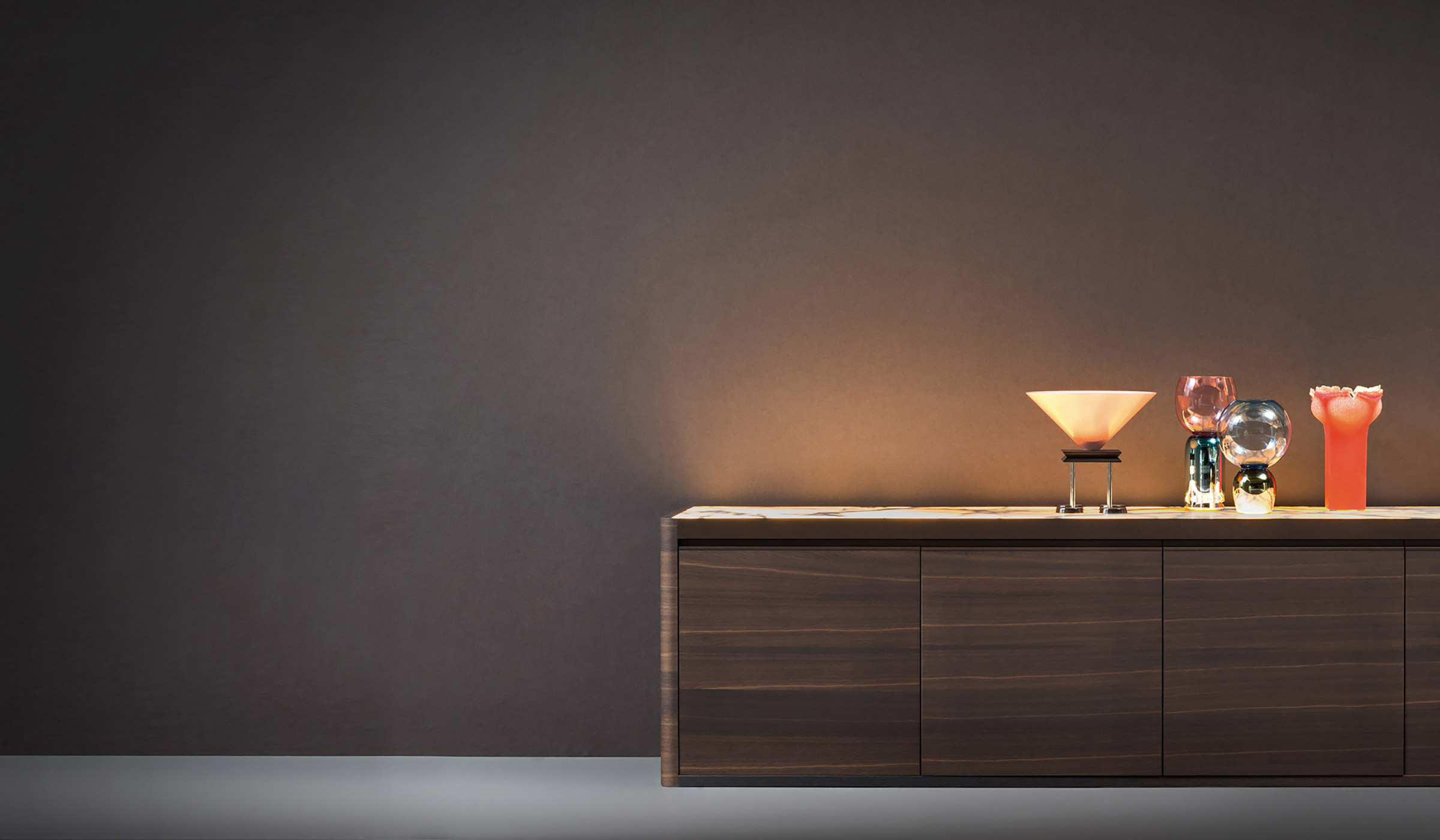 The LED lights fitted in the top are controlled by an on/off switch or by Casambi, the exclusive smart-lighting system that controls the illumination from a smartphone or tablet.
