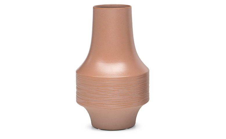 Laf花瓶是對普利亞一種青銅容器的重塑和簡化,更凸顯干凈利落的切割線條和富有現代感的釉面。刮擦技術讓中心環的紋理更為豐富。
