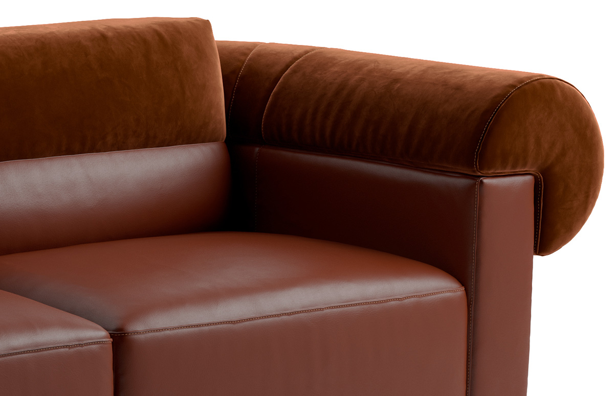 從審美角度看,New Classic沙發的特點在于以一條軟墊滾柱隔開沙發上部,形成扶手和靠背,沙發下部是方形的簡約座椅,側面以金屬管加飾。