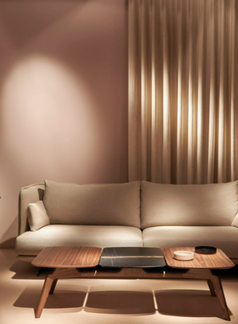 The singularity of this mirror is base don its caring proportions; a hand-made natural walnut shelf combines the softness lines of the mirror.