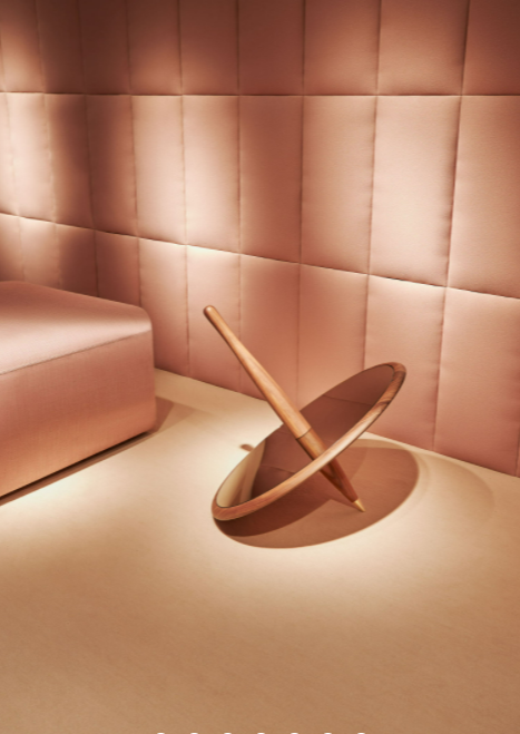 The singularity of this mirror is base don its caring proportions; a hand-made natural walnut shelf combines the softness lines of the mirror.