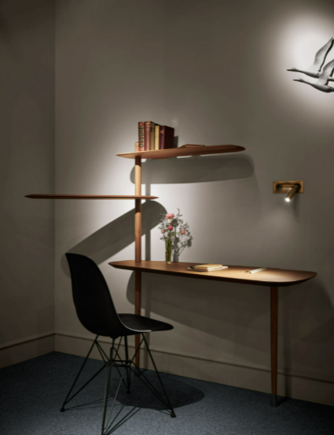 The singularity of this mirror is base don its caring proportions; a hand-made natural walnut shelf combines the softness lines of the mirror.