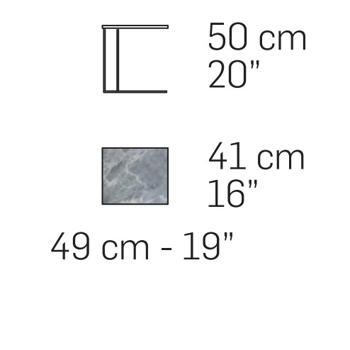 Metrico Small è la variante del modello Metrico. Si distingue per la forma squadrata più slanciata. La struttura metallica in finitura canna di fucile sorregge il piano superiore, disponibile in diverse versioni in marmo.