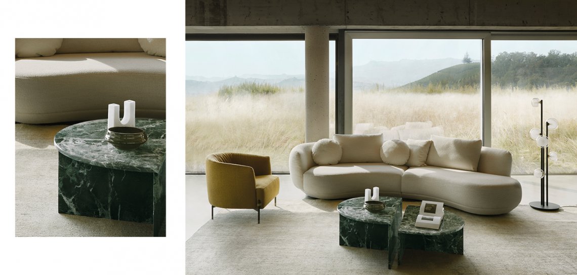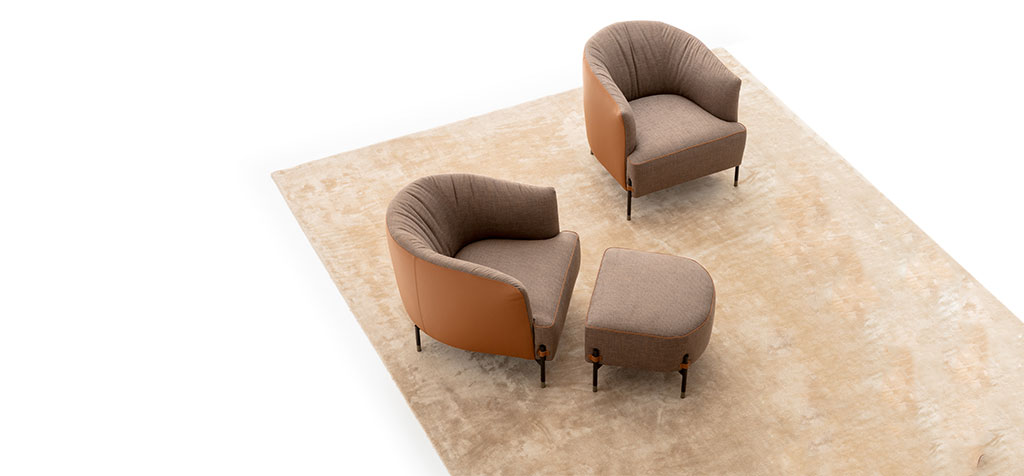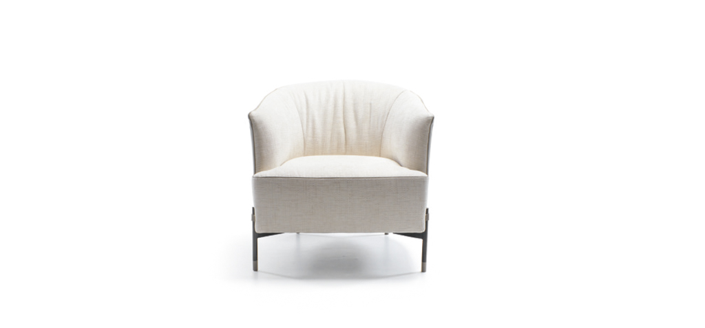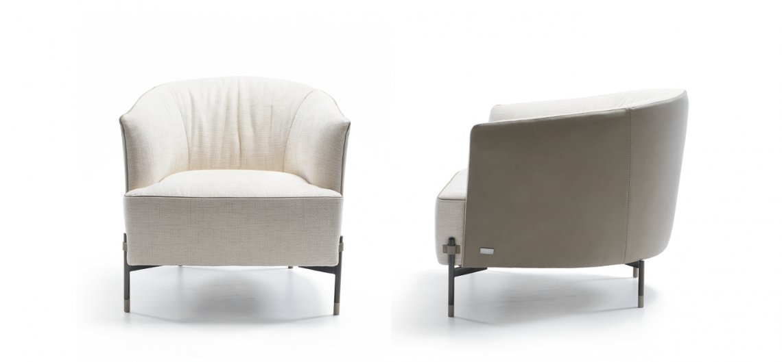 Diga, una sofisticata poltroncina dal linguaggio estetico ricercato e dalle linee avvolgenti, che offrono una sensazione di grande accoglienza, grazie alle imbottiture di seduta e schienale. Dettaglio inusuale sono i piedi di sostegno che escono dal corpo della seduta, posizionandoli esternamente alla struttura.