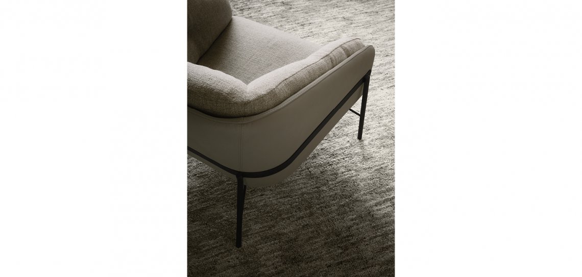 Fashion ha una struttura sofisticata e leggerissima, un nastro che, non solo ne disegna la forma ma la sostiene e la abbraccia. Infine un rivestimento che come un abito sartoriale