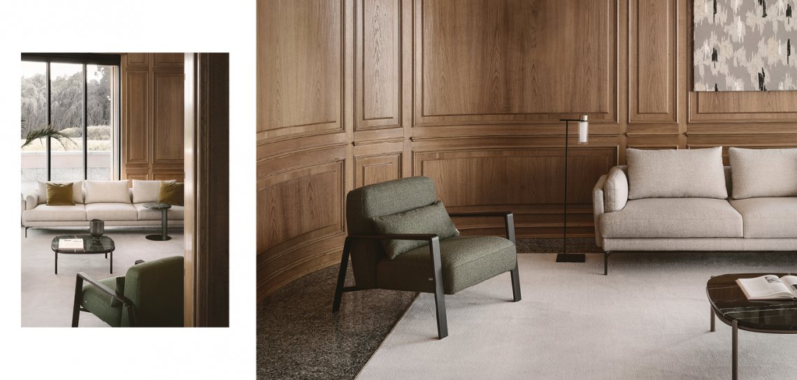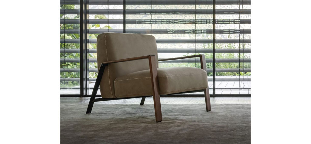 Dal design minimale e deciso, la poltrona Luis presenta una struttura in metallo rivestita da una cover in legno che la rende adatta a qualsiasi location.