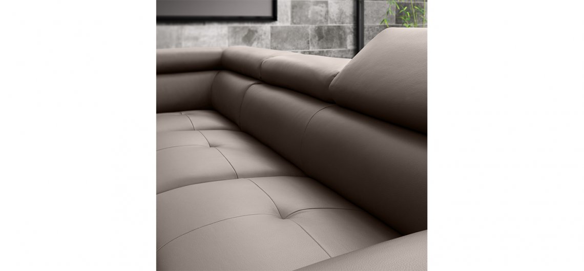 Tiziano è un divano imponente. Si distingue per la presenza di poggiatesta reclinabili manualmente che ne incrementano il comfort. Le cuciture sulla seduta e i piedi alti e sottili donano un tocco di eleganza al modello. Disponibile in pelle o tessuto.