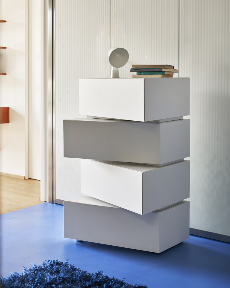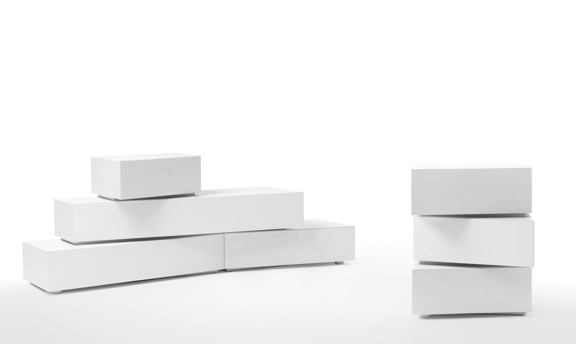 Contenitori in mdf dall’inusuale forma trapezoidale da combinare secondo il proprio gusto o necessità. Una collezione di volumi versatili e fuori dagli schemi ideali per risolvere, grazie alle diverse profondità, i problemi di spazio e progettati per trovare ospitalità in ogni ambiente della casa. Possono trasformarsi in originale cassettiera o comodino per la camera da letto, divertente mobile tv o credenza per il living.