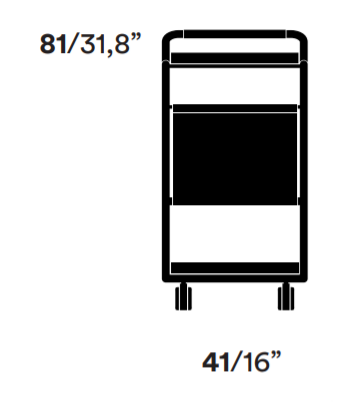 Tre vassoi in acciaio poggiano su una struttura sinuosa realizzata con sottili tubi d’acciaio, una pratica tasca in cuoio rigenerato trova spazio sul fronte mentre maniglia e ruote pivottanti rendono ancora più agevole lo spostamento di un prodotto nomade per definizione.