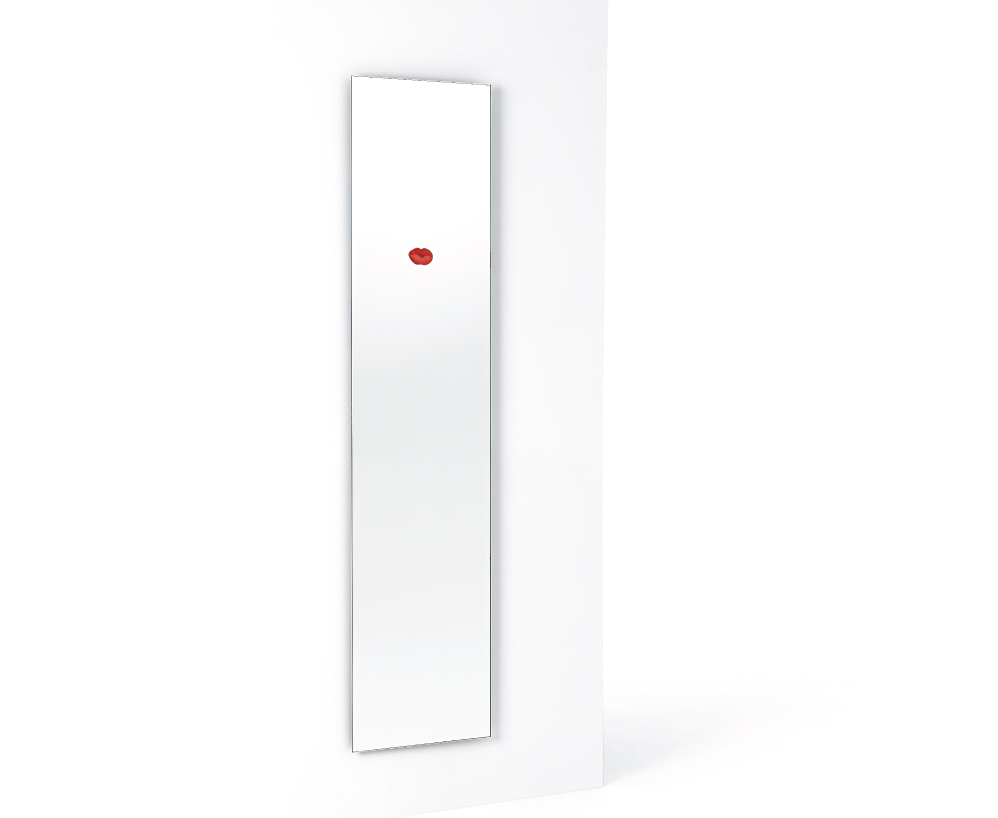 Può apparire ad un osservatore distratto come una semplicissima specchiera a tutta altezza, Lipstick lo specchio di Bruno Rainaldi con disegno serigrafato, ma alla seconda occhiata di certo non sfuggirà quel piccolo sensualissimo dettaglio rosso. Quel bacio a fior di labbra lasciato in custodia ad un specchio a parete, sognando che Marilyn Monroe lo abbia lasciato proprio a noi ,o immaginando un dolcissimo saluto tra due amanti.