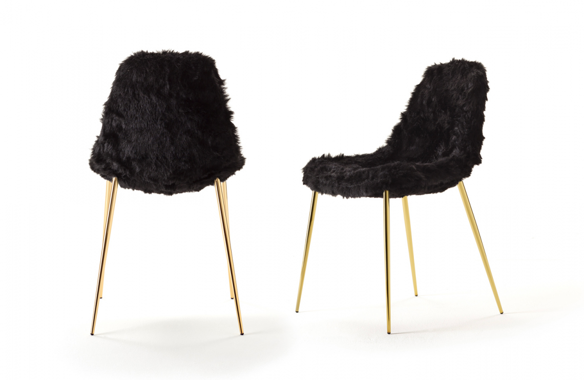 La scocca inpressofusione di alluminio è infatti rivestita da una morbida eco pelliccia che trasmette immediatamente una sensazione di accogliente comodità senza rinunciare a quel tocco glamour, che è tratto distintivo delle sedie Mammamia.