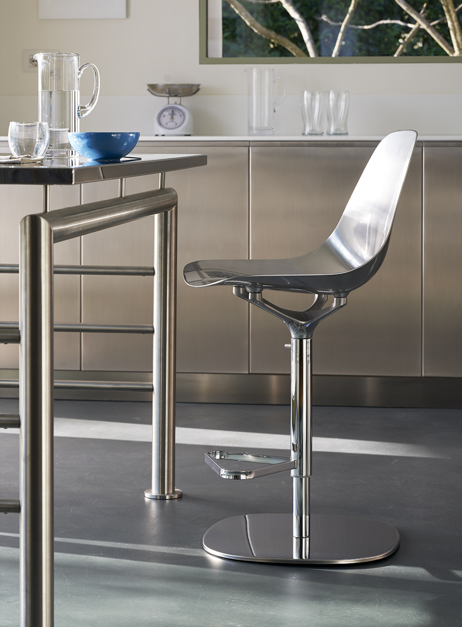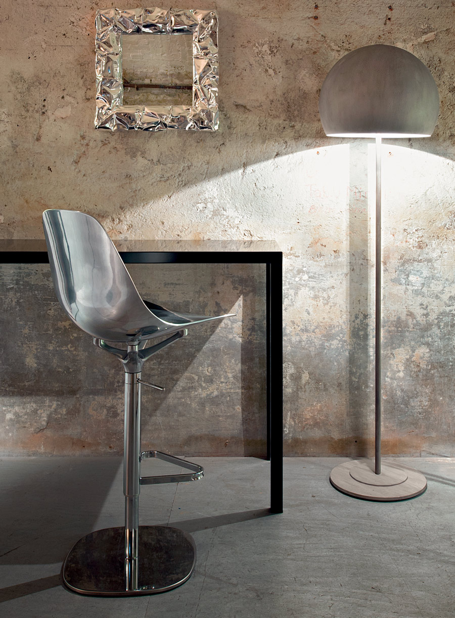 Un design accattivante, un profilo sinuoso, una seduta accogliente: Mammamia Stool – disegnato come la sedia Mammamia da Marcello Ziliani – è soluzione perfetta per locali pubblici e spazi privati. Grazie alla sua versatilità in fatto di finiture è adattabile ad ogni tipologia di ambiente: alla struttura e alla base in acciaio cromato si abbina una scocca in pressofusione d'alluminio che può presentare una finitura a specchio o essere imbottita e rivestita in varie tipologie di tessuto o pelle.