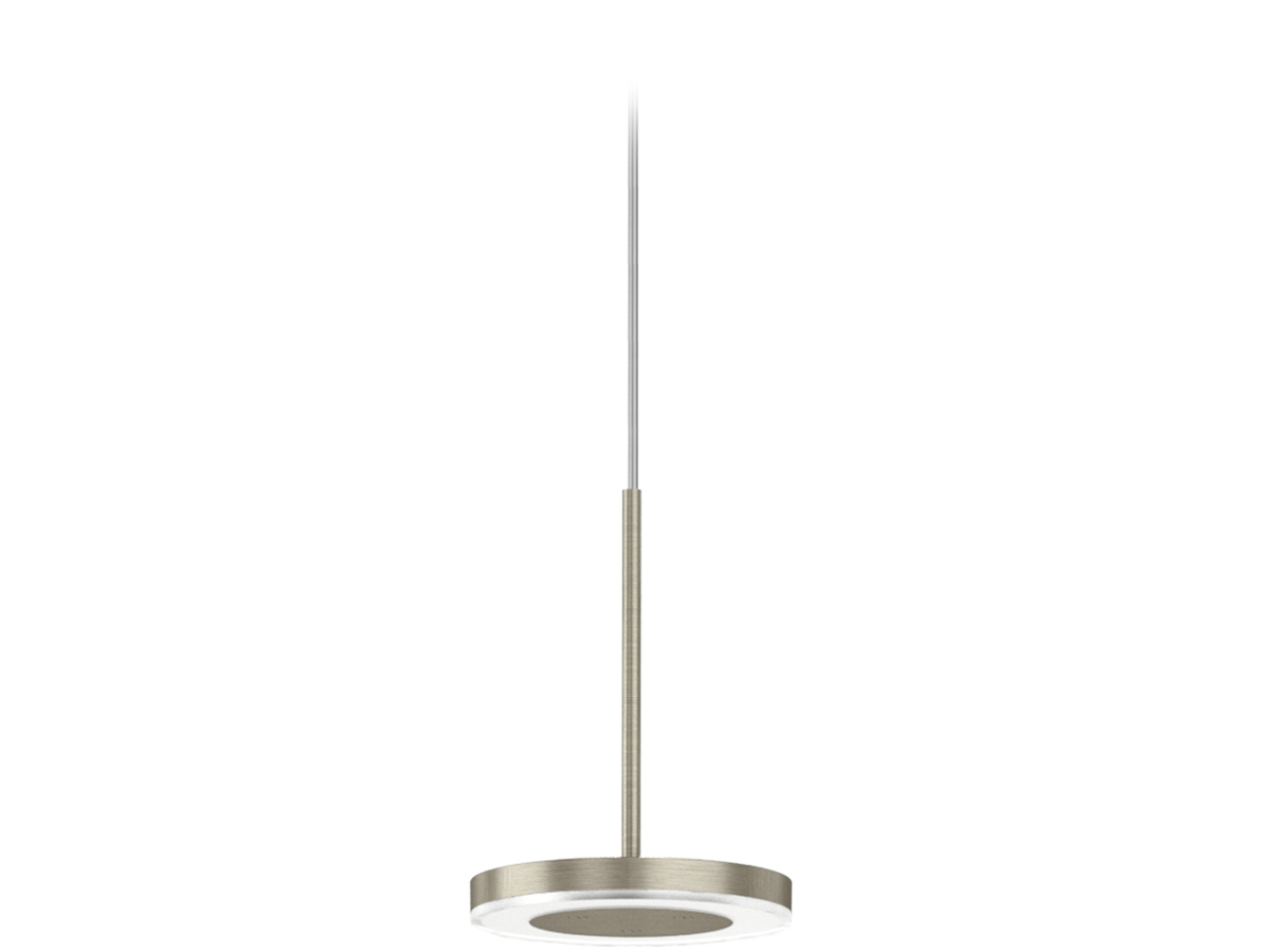 Lampada da sospensione, tavolo e parete (disponibile anche a incasso) con testa in pressofusione di alluminio. Diffusore in materiale acrilico con perimetro luminoso. Braccio conico decentrato, testa orientabile e comando Step DIM a 5 regolazioni di intensità luminosa caratterizzano le versioni da tavolo e parete, quest’ultima con snodo anche alla base, per una maggiore flessibilità nel posizionamento. La versione a sospensione, testa fissa e con tige centrale è disponibile in versione a emissione diretta e indiretta. Disponibile paralume in tessuto color avorio “Bella vestita” disegnato da Matteo Thun, da ordinare separatamente. Bianco, nero, titanio, bronzo e ottone satinato le finiture disponibili.