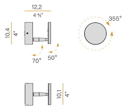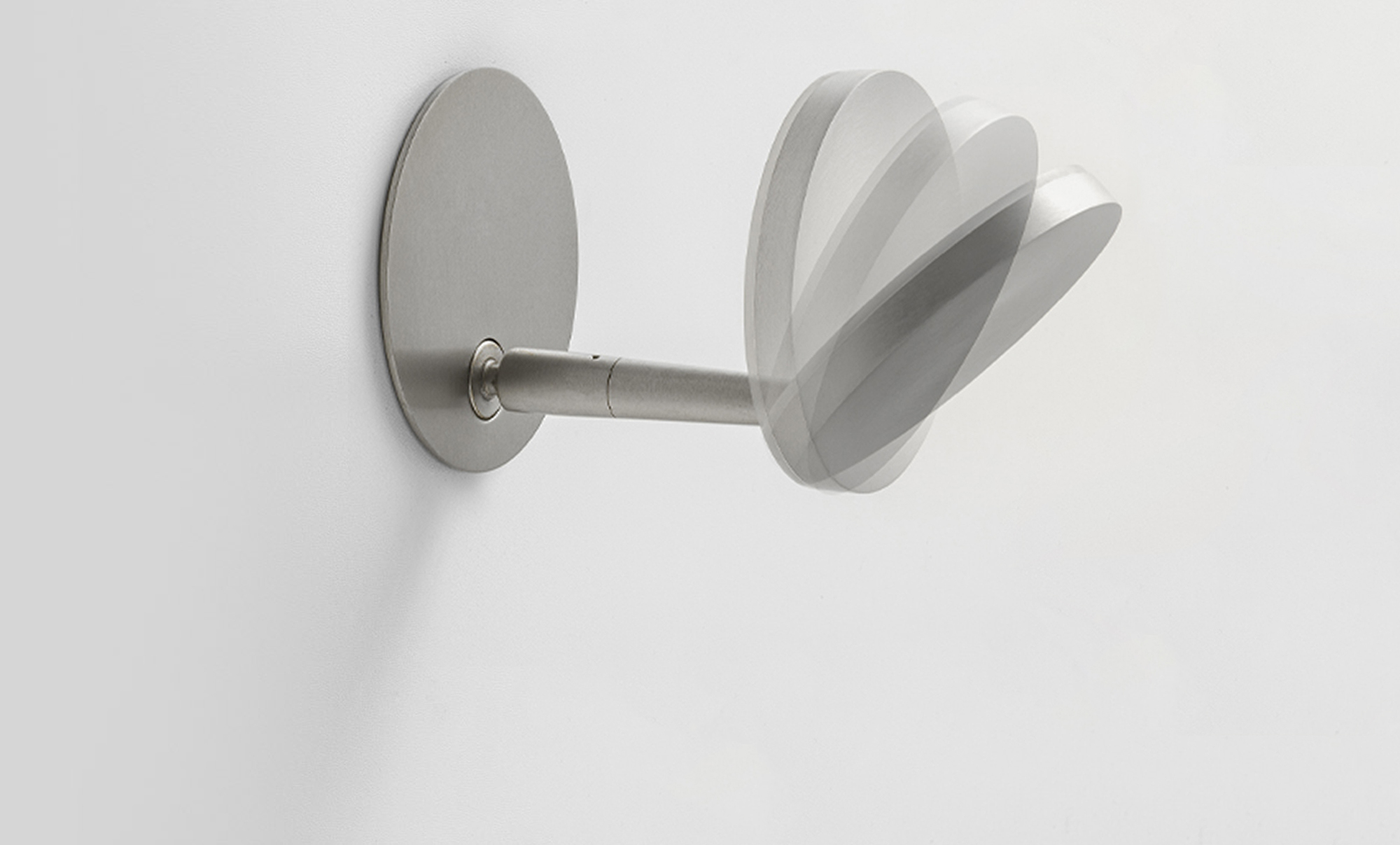 Lampada da sospensione, tavolo e parete (disponibile anche a incasso) con testa in pressofusione di alluminio. Diffusore in materiale acrilico con perimetro luminoso. Braccio conico decentrato, testa orientabile e comando Step DIM a 5 regolazioni di intensità luminosa caratterizzano le versioni da tavolo e parete, quest’ultima con snodo anche alla base, per una maggiore flessibilità nel posizionamento. La versione a sospensione, testa fissa e con tige centrale è disponibile in versione a emissione diretta e indiretta. Disponibile paralume in tessuto color avorio “Bella vestita” disegnato da Matteo Thun, da ordinare separatamente. Bianco, nero, titanio, bronzo e ottone satinato le finiture disponibili.