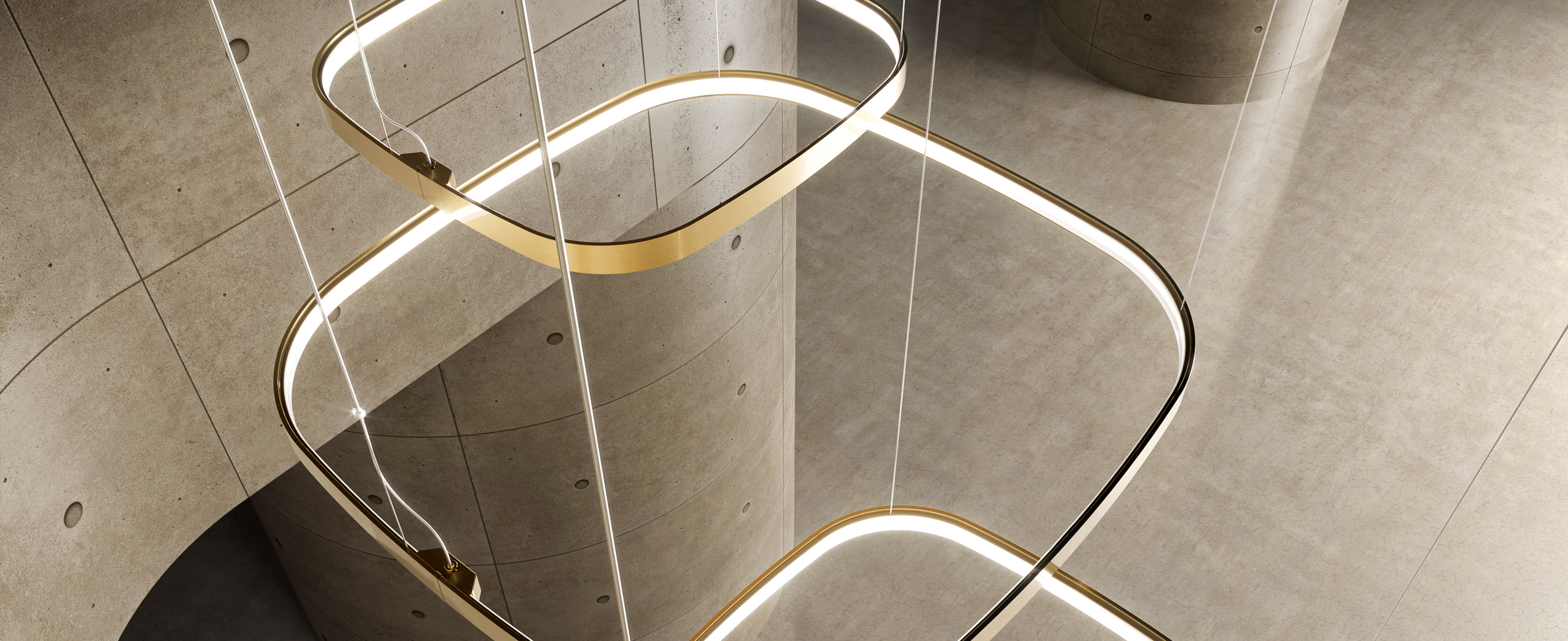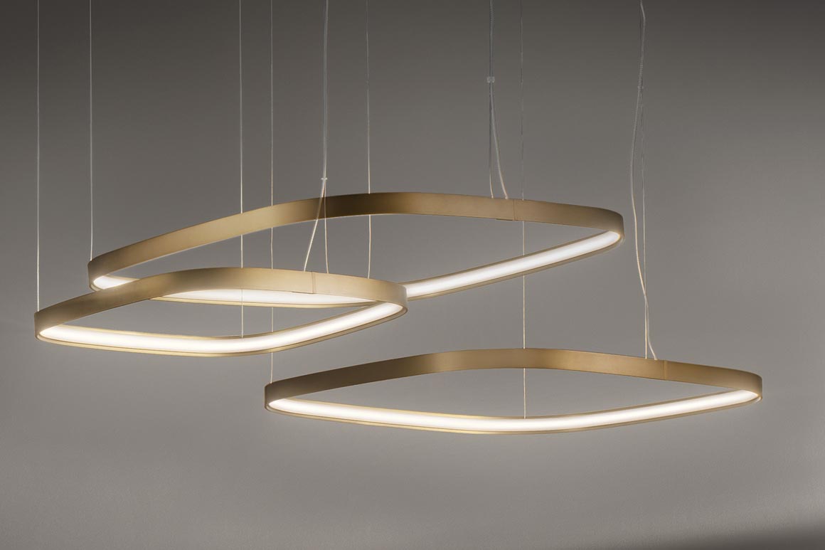 Lampada a sospensione in alluminio estruso curvato con schermo in policarbonato opale. Emissione interna attraverso modulo LED e tecnologia DALI/Push DIM di serie su tutte le versioni inserita nel rosone. Anello rifinito con vernice poliacrilica color bianco, nero, titanio, bronzo e ottone satinato. Possibili colori custom su richiesta. Disponibilità di rosoni per installazioni singole e composizioni multiple in abbinamento a Zero Ellipse e Zero Round da ordinare separatamente. Ideale per uffici, hall, zone living, grandi spazi, anche in abbinamento con Zero Round Acoustic e Arena Acoustic.
