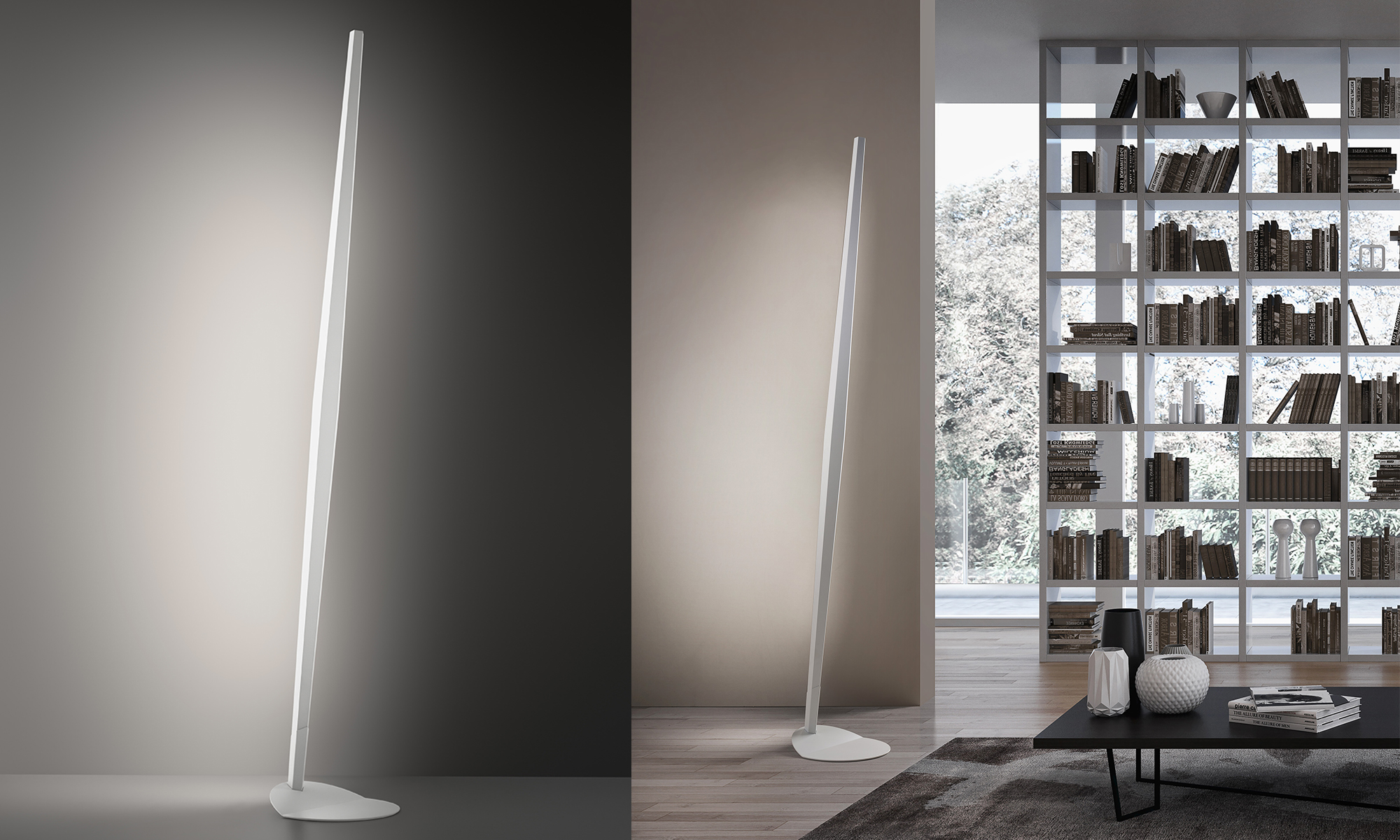 Lampada a sospensione e da terra con sezione pentagonale in alluminio piegato e inciso. Sorgente luminosa composta da modulo LED e dimmerazione di serie DALI/Push DIM integrata nel corpo della lampada tramite driver ultra-flat di ultima generazione. Versione a sospensione disponibile in due lunghezze (120 e 210cm) a luce diretta. Disponibile versione a sospensione a luce indiretta, ideale per creare composizioni in combinazione con la versione a luce diretta. Disponibile versione da terra con base realizzata in metallo tagliato a laser, piegato, e verniciato. Finitura con vernice poliacrilica in bianco o nero. Ideale per uffici, zone living, e in composizione per arredare grandi spazi.
