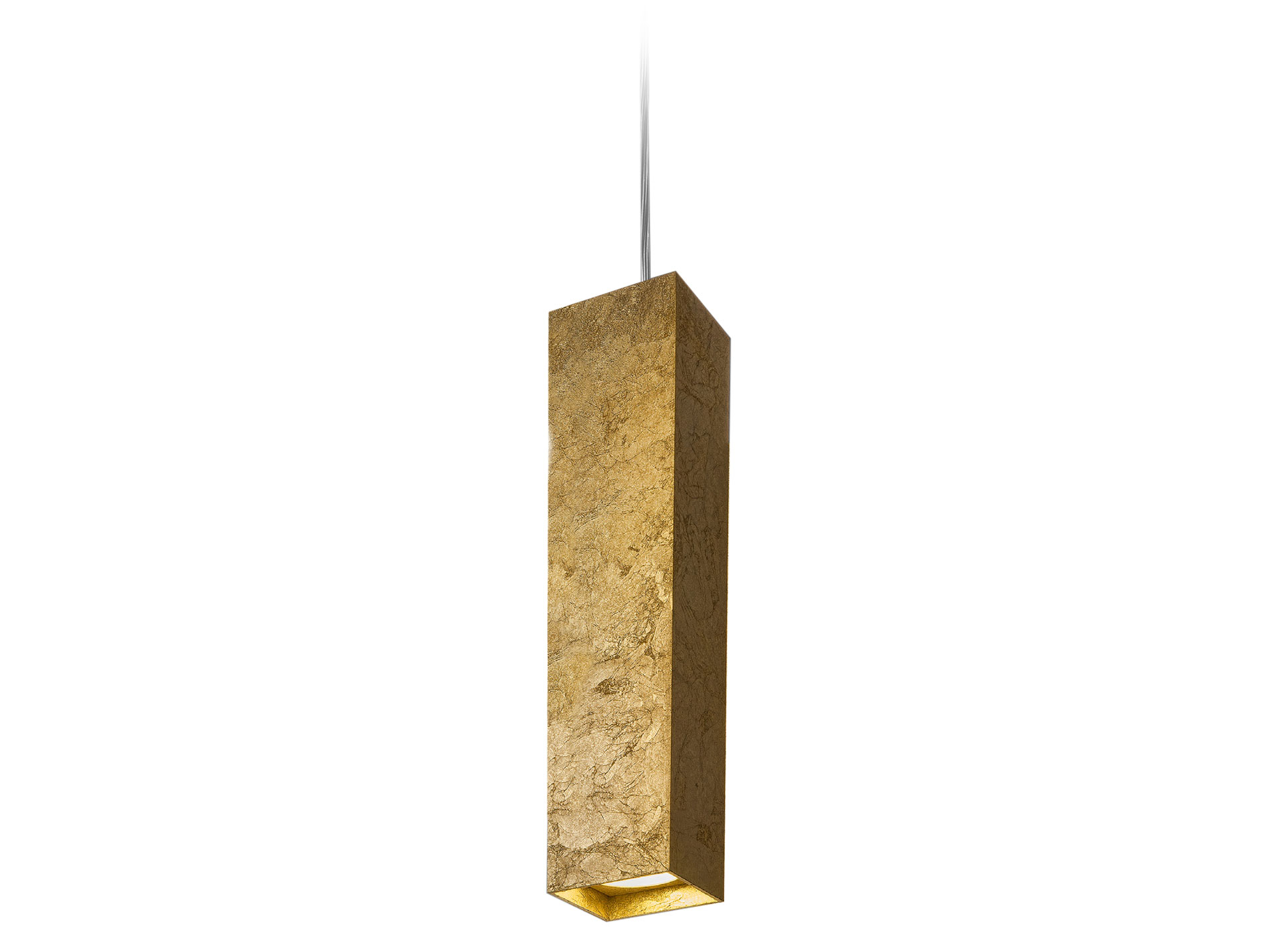 Lampade LED da sospensione e soffitto in tubo quadro di alluminio nei colori: bianco, nero, bronzo, ottone satinato e foglia oro.