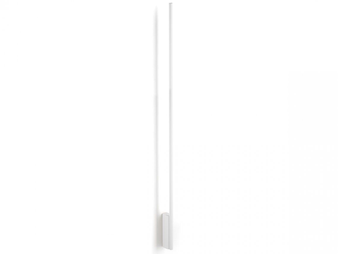 From the success of Hilow, this new series represents the founding principle of the system in its purest form: a linear module slender and discreet also in the light emission; a luminous stick to install on the wall or free-standing on the floor, with a structure in extruded aluminum and diffuser directed towards the wall for a comfortable indirect light effect. The intensity of light can be dimmed both in the wall mount version, thanks to the integrated driver through DALI or Push DIM technology, and in the floor version, equipped with electrical cable with dimming pedal. It is available in the finishes white, satin black, bronze, mat brass and titanium both for the wall-mount version and for the floor version, with base in black marquina marble. Floor version with base in travertine is paired with the metal finishes bronze and mat brass.