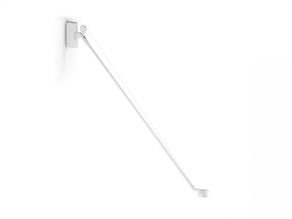 Opuntia is a series of table, wall or ceiling-mount lamps with jointed structure for optimal positioning of the light source with respect to the working plan, ideal for workstations or for the illumination of tables and desks in home or hospitality settings. The structure is built in tube-shaped aluminum with jointed elements in aluminum die-cast and tie-rods in steel; the adjustable head in aluminum die-cast is equipped with a LED board with technology DIM-to-warm to regulate light intensity and color temperature accordingly; the electronics onboard allow to set also on tunable white, with fixed light intensity and color temperature ranging from warm white to cold white. All models are available in polyacrylic paint in finish white, satin black, bronze, mat brass and titanium.