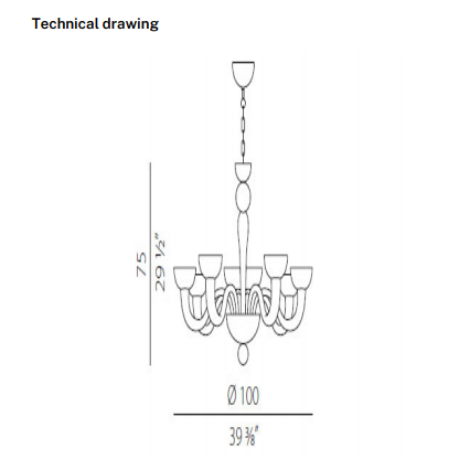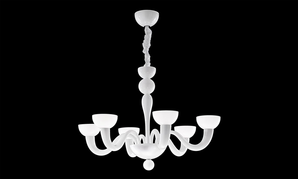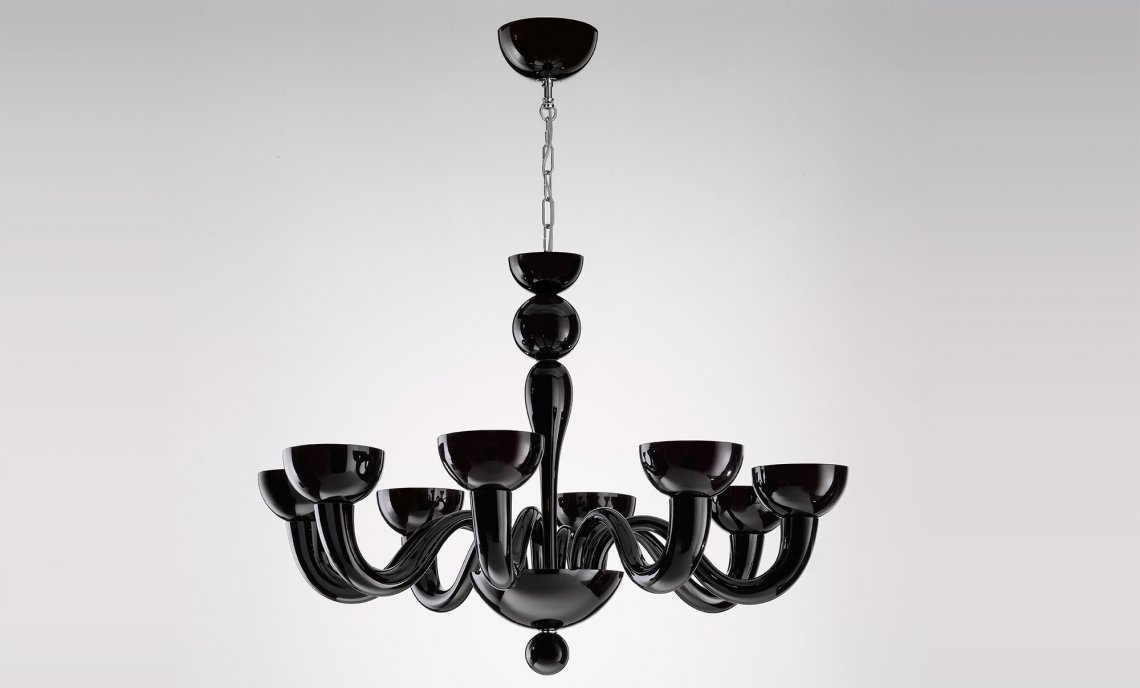Realized with advanced techniques, it is the perfect combination of traditional craft of Murano glass blowing and Lombard mechanical technicity. Born to enlighten elegant and exclusive locations, it is an excellent furnishing accessory for modern settings, where Tate pure and original forms are well suited to the minimalism of the contemporary interior design. Available in mat black or white, it offers also a wide range of customization of the sections and the colors, meeting the needs of the most demanding customers. To ensure safety, arms have an elastic system that prevents the fall and the accidental breaking of the elements during cleaning operations. Tate houses halogen bulbs and is available in the hanging version (diameter 90 or 100 cm) and in the wall version.