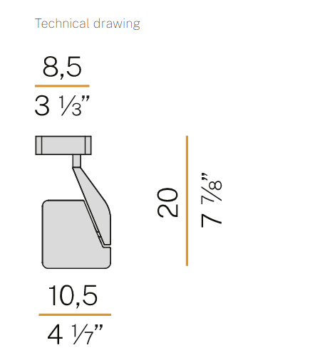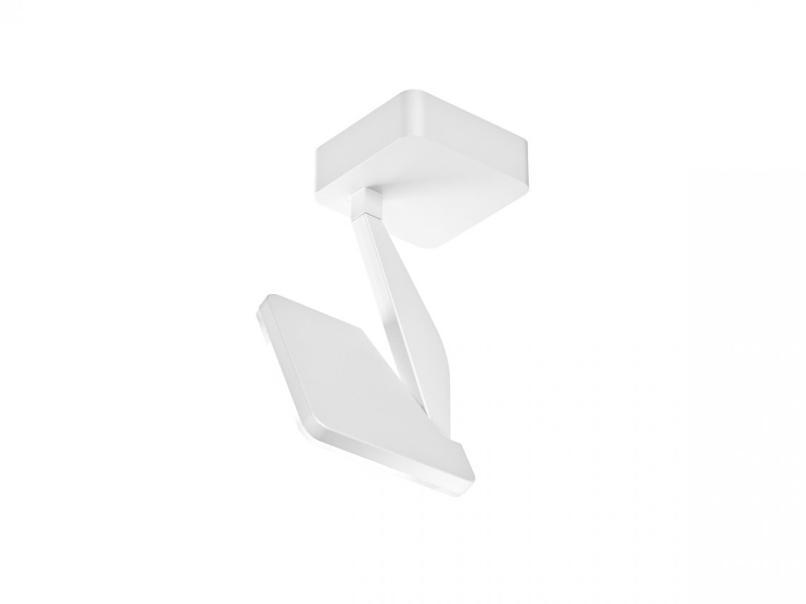 able, floor or wall/ceiling lamp made of extruded aluminium for the structure and die-cast aluminium for the head and the junction. Diffuser in polycarbonate with luminous perimeter and double screen serigraphy, specifically designed to optimize the beam and reduce the glare. Swiveling light beam created by 1 LED module consisting of 18 diodes. Dimmable light with CRI=90 for all versions (except for version P/B) with technology Step DIM with 5 intensity of light settings and courtesy light. Structure in white, black or mat brass polyacrylic paint, or brushed and colored titanium. Rotating head on 2-axis through a double joint. Miniaturization of the junction with the possibility of regulating the tightness. Accessories available in the C version: clamp, pin and the wall arm. Ideal for offices, desks, studios, night zones.