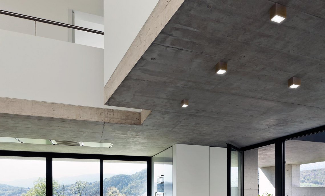LED wall/ceiling lamp in aluminium colored in white, bronze, mat brass, black polyacrylic paint and mat glass.