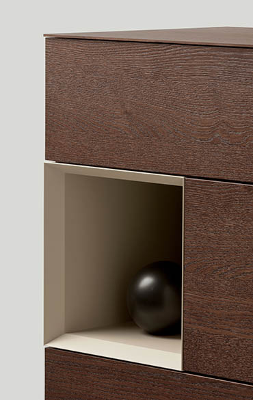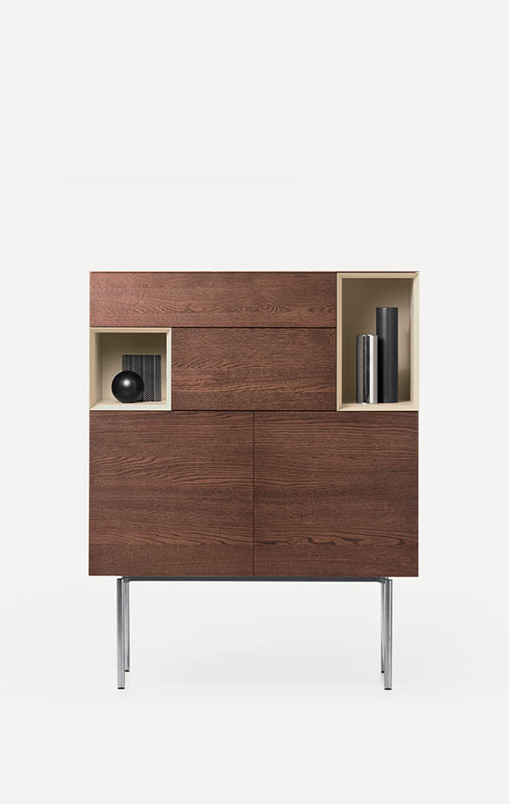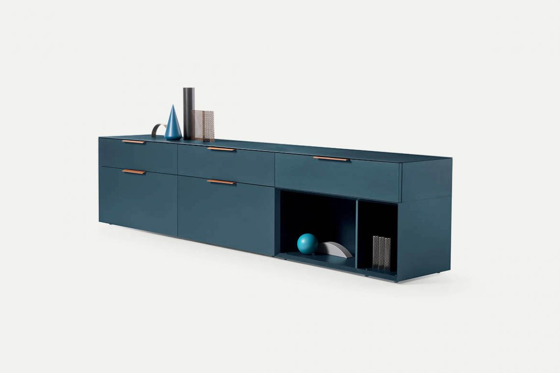 A sideboard of many faces, Brema is all about unfussy lines and formal elegance while giving you the utmost freedom to tailor the look and function of the piece to your individual tastes. An incredible array of material, with a choice of refined belt leather handles or the more minimalist push-to-open door system, open and closed storage units make alternation of solids and spaces possible: Brema is the fantasy of those who want to model their sideboard around their personal use requirements and their individual sense of style.