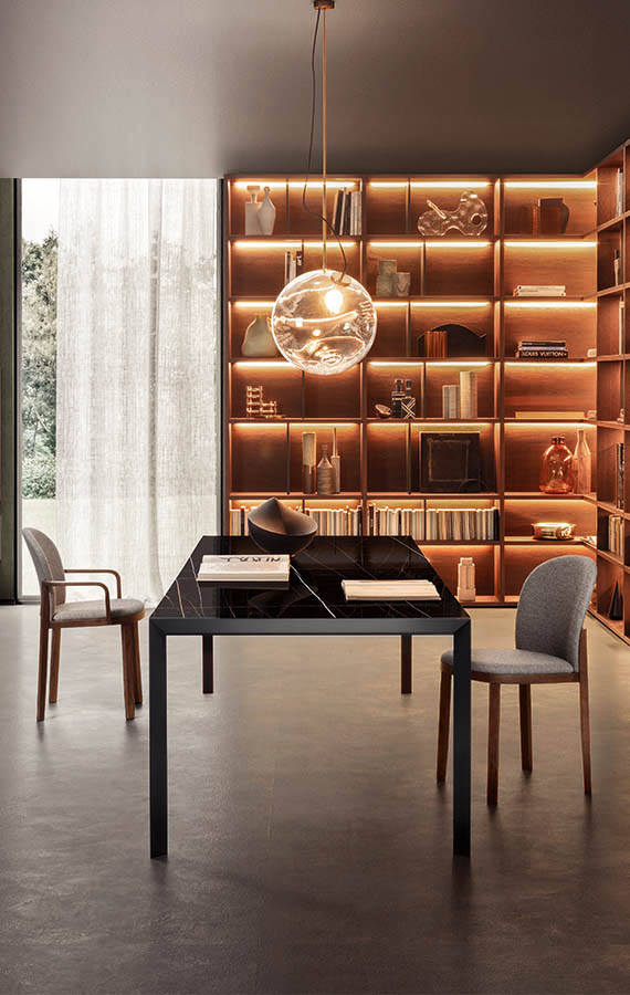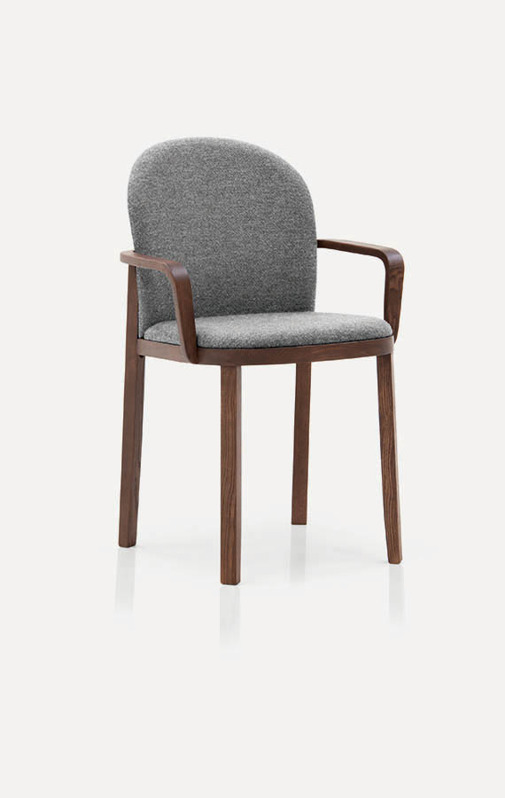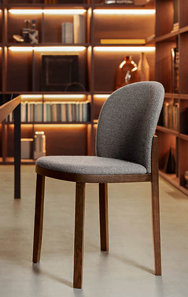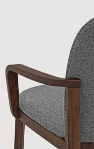 Merging a classic aesthetic and a contemporary approach to the use of wood, Orchestra emerges as a chair that conveys the idea of familiarity and reliability through a sophisticated and painstakingly controlled language. Philippe Tabet has cleverly produced such a refined and interesting design that Orchestra is eloquent and attractive from any angle. With their square section, the rear legs are splayed out slightly, morphing into armrests as they travel upwards, drawing a curving and beautifully tactile outline. These unbroken lines lend a clean,