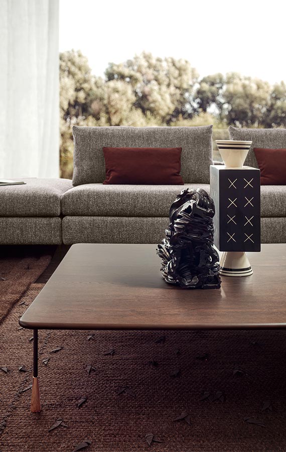 The inspiration behind the eccentric and original detail that is the common denominator across the Baio series can be traced back to Iceland. It was the iconic image of a herd of horses that gave the designers the idea of fitting the tables’ legs with a hoof in a tapering, elongated shape. This detail gives the design an out-of-the-box look and grounds the piece in a more evident way. The resulting compositional balance is refined and delicate. In the version with the round top, the single central leg is fastened to a circular supporting plate, which quietly gives the whole piece stability. Another of Baio’s distinctive features is the considerable variety of shapes and sizes available, further supplemented with ample scope for customization with a choice of materials, colours and finishes.