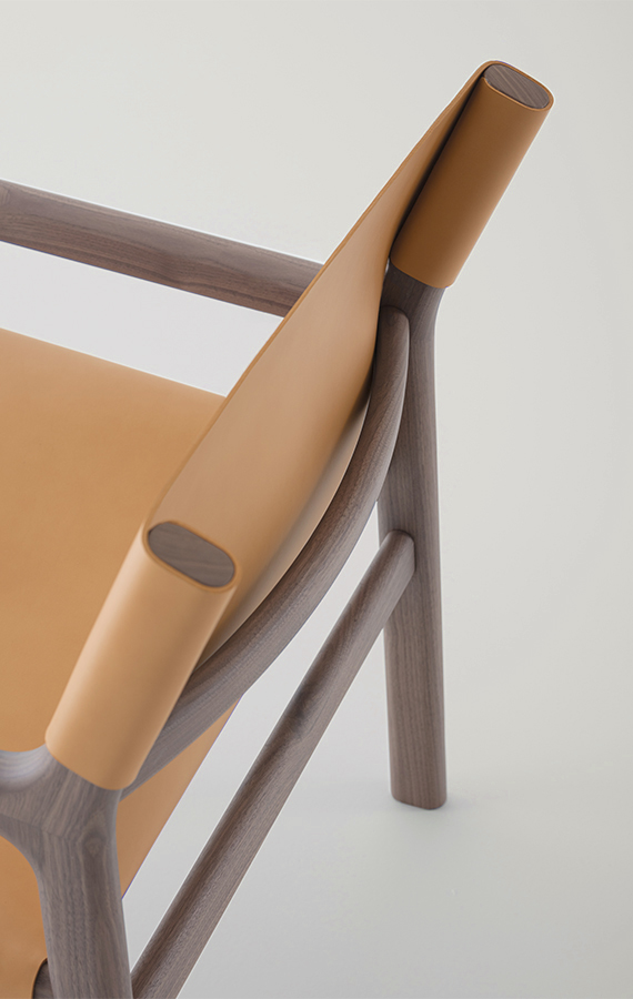 Italian craftsmanship fuses with Japanese style in an armchair deeply infused with references and tactile experiences. A new complement is added to the Fushimi collection. A tale of expectations derives from the tangential relationship between the joints. Leather wraps around wood, renewing an ancient collaboration: evocation of new relationships between material and colour. A reinterpretation of the Fushimi bed, the Fushimi lounge armchair builds on the dominating features of its own inspiration, starting with how the luxurious solid wood is machined and finished. Designed with simplicity, naturalness and proportion, the Fushimi Lounge chair has a wooden structure that is both concealed and exposed in symbiosis with the main leather section whose meticulous craftsmanship is utterly inviting. Available in solid walnut or ash in the Rovere Naturale, Borgogna and Canaletto shades or Open-pore Nero, natural hard leather in the Hermes, Moro and Nero colours.