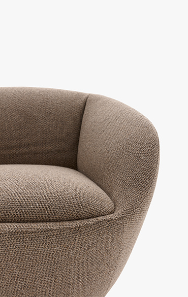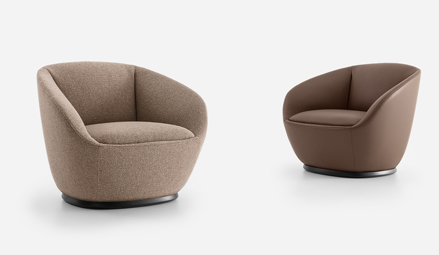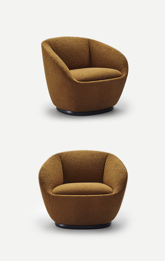 Sometimes, the secret lies in simplicity. That is how it is for the renowned Indian naan bread, and so it is for the armchair of the same name, designed by Federica Biasi: a compact, embracing volume with soft, gentle contours. The structure develops from a square base with rounded corners into one single block form, projecting it into the space, with no interruption, creating an inviting volume. Slim, tapered armrests and backrest enclose a generous seat. The absence of voids gives the armchair a precise, elegant look of balanced form and geometry, both visible and invisible. The Naan armchair is also available as a swivel chair and is a product that suits any space, conceived for home living areas, public spaces and hospitality venues. Its intrinsic simplicity makes it a piece of furniture that matches a wealth of decor styles.