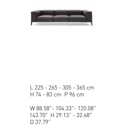 A challenge for gravity: All-in is all about daring design choices. Generous shapes and square volumes communicate with minimalism enhancing lightness and composure. Long legs support a structure raised 18 cm above the floor and run up the sides of this sofa in finishes that can be chosen from any of those available in the collection. The structure is entirely concealed from view by the cushions. Two types of backrest are available and can be used together in mixed arrangements: one flush with the armrests and another taller one.