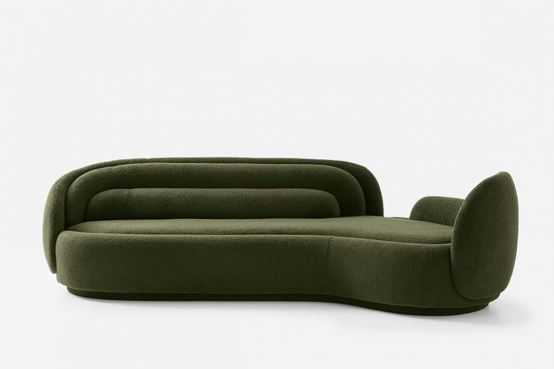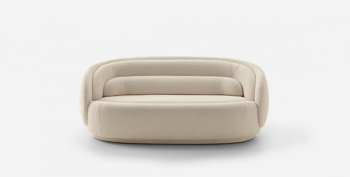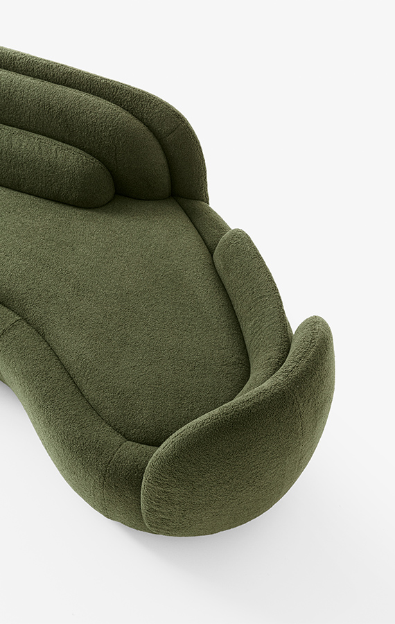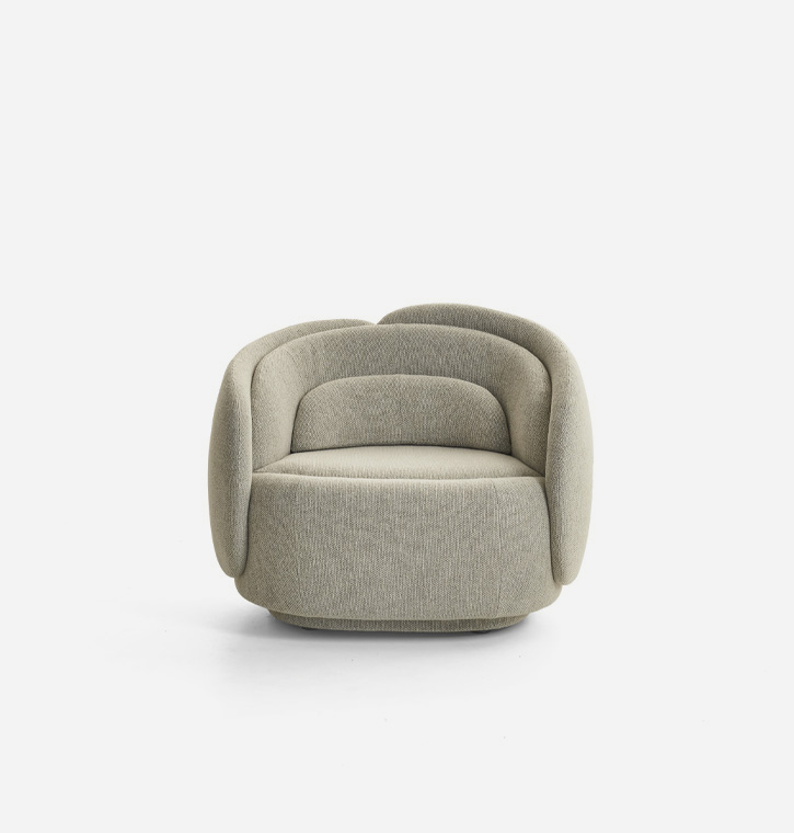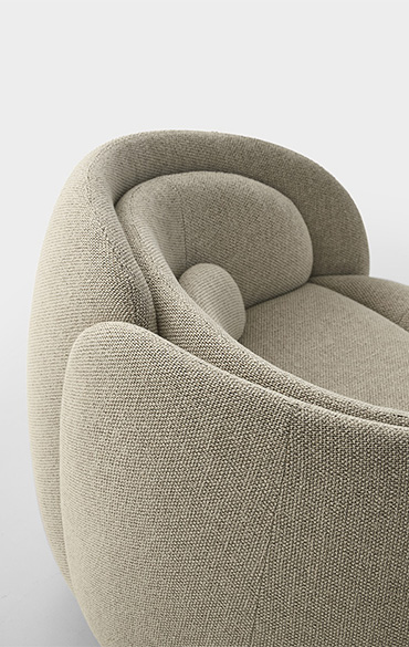 The new seat designed by Cristina Celestino for Pianca unfurls like a flower in Spring. And it is indeed nature, with her perfect geometries, that provides the inspiration for Peonia’s creative genesis. Sculptural and inviting, it captures the eternal becoming of every living thing in its forms; the tension to a constant and inescapable perpetual movement. The shell of the armchair is composed of different surfaces, arranged in an evocative crescendo that recalls the petals of a corolla. The sofa of the same design becomes an elegantly regal seat. The modular geometric forms allow infinite combinations to created, experimenting with various levels and heights, solids and voids. The entire structure is fabric upholstered in a continuum of colours and textures in the base and seat.