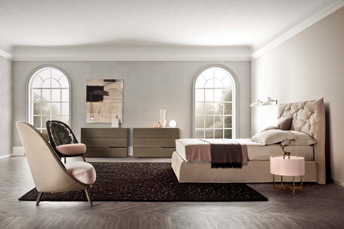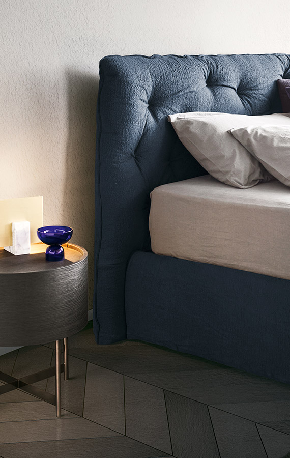 Renewed and redefined, tradition is dressed up with contemporary, beautifully-fashioned accents. This imposing, refined design is dominated by the charm and prestige of the tufted finish, sewn strictly by hand. This finish goes beyond the classic, diamond-shaped pattern, following its own original, asymmetric design and informally dynamic style. The already large and magnificent headboard is even taller and more majestic in the Maxi version.