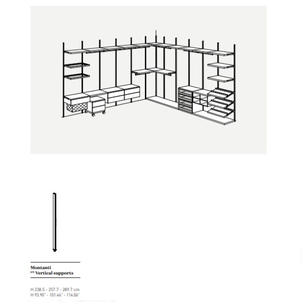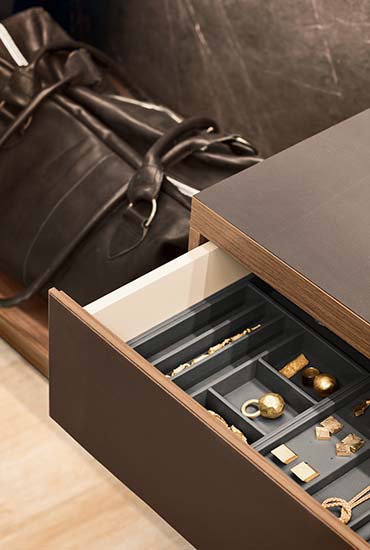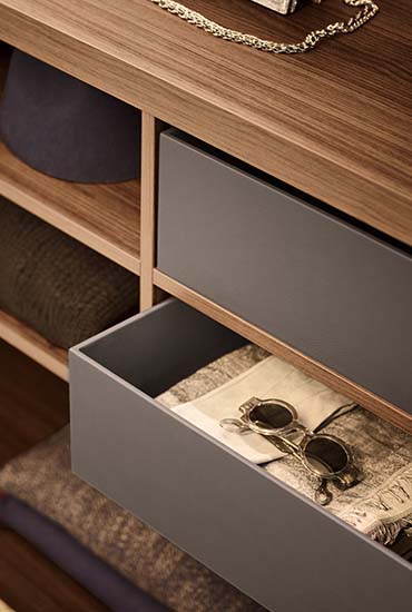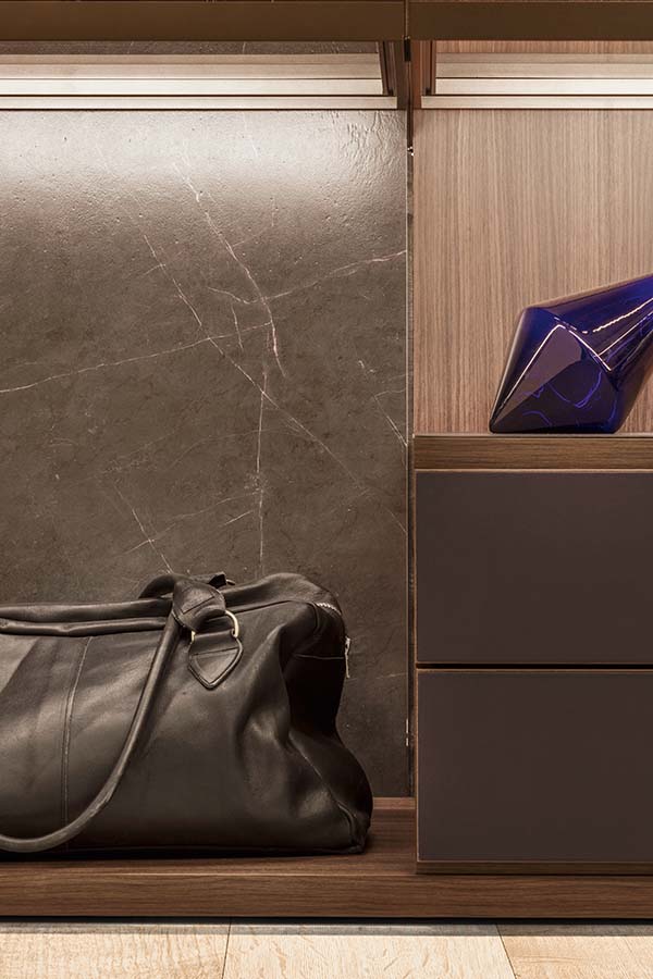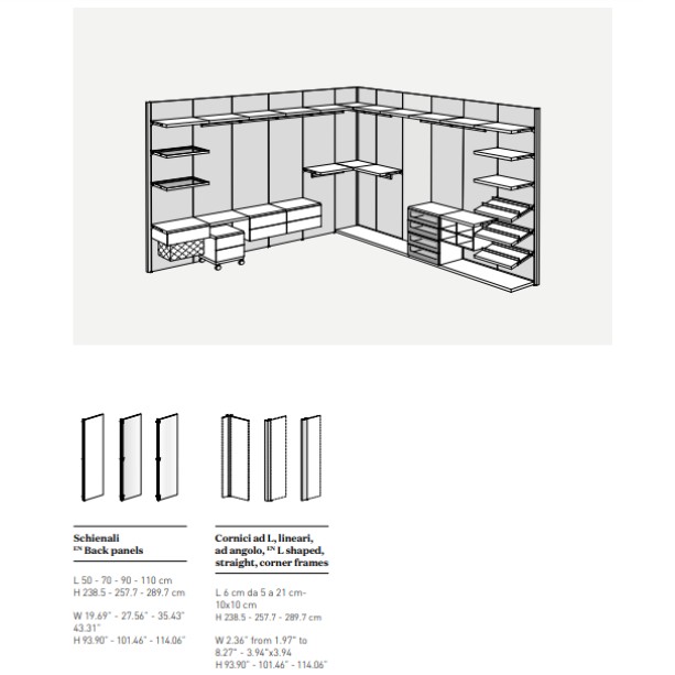 Every day of our lives – as well as on special occasions – we repeat the ritual of choosing what clothes to wear and which shoes and accessories to use with them. Anteprima has been designed to accompany and inspire our choices. Practical, fascinating elements allow unsurpassable freedom of arrangement and can be customised in a wide range of finishes to meet the most demanding requests. Available with or without back panels, the structure can be completed by lots of different modular elements such as shelves, drawer units, suspended cubbies and hangers.