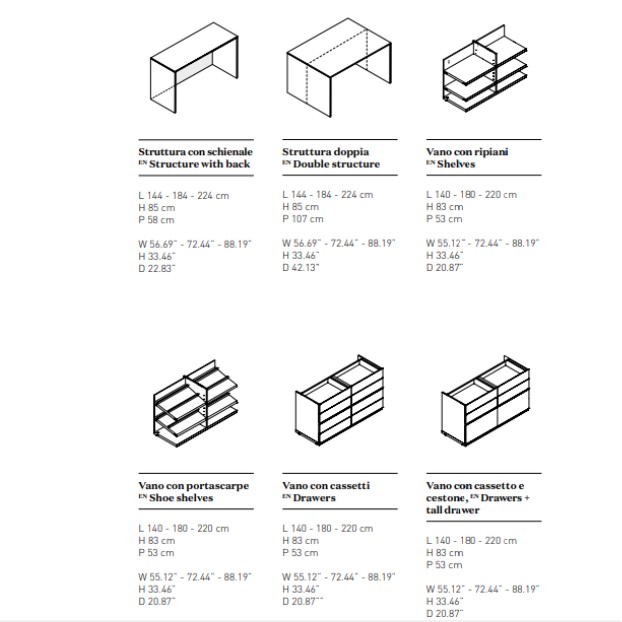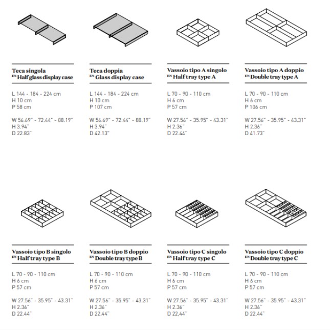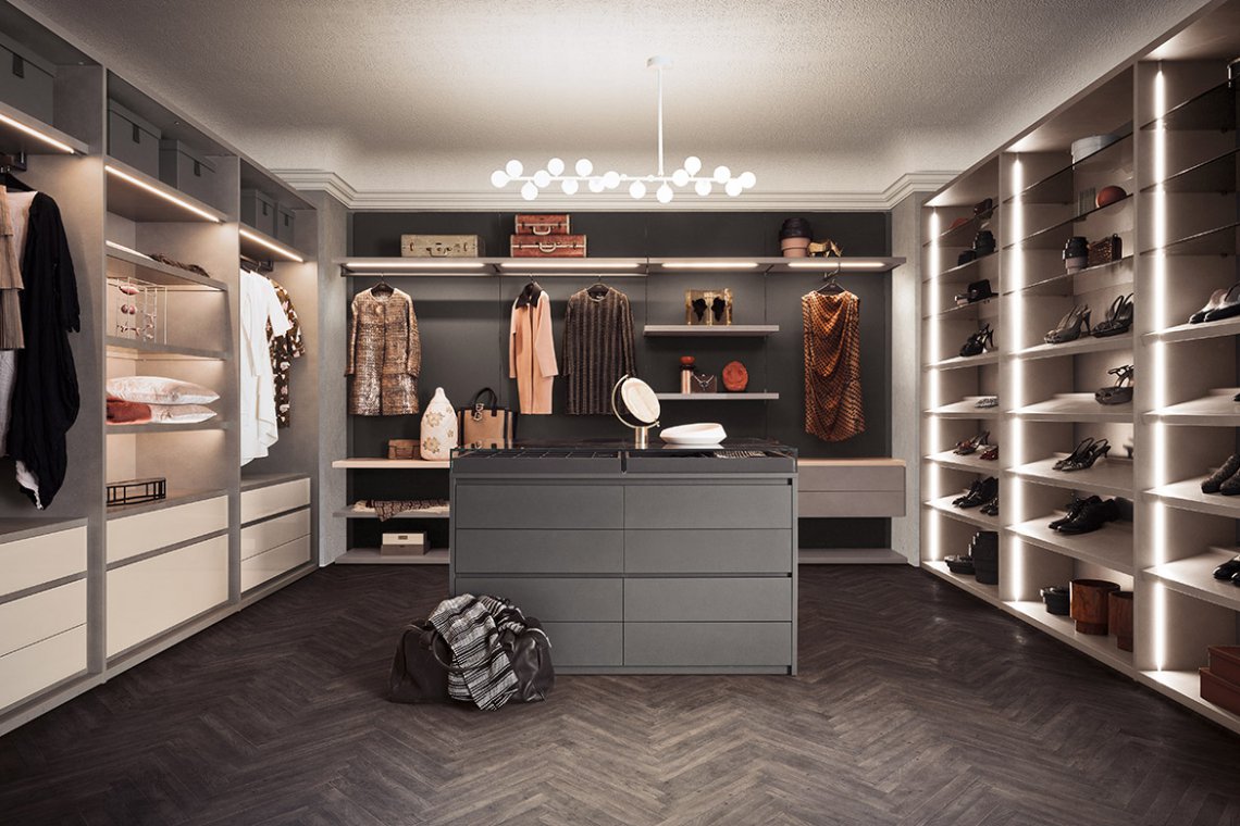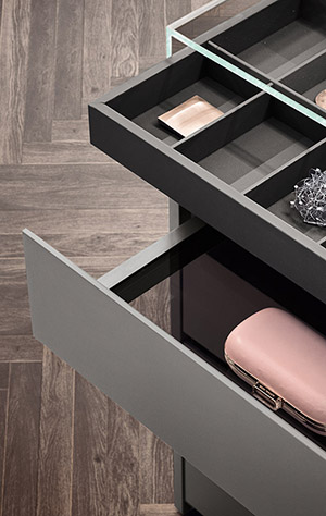 The Island module appears like a dreamy oasis in the middle of the room: an island for walk -in closets evoking the most exclusive boutique furnishings, directly in your home sea. Thanks to the possibility of being equipped with draw ers, shelves and shoe-racks, it’s an useful and versatile shelter for any kind of wardr obe; moreover, it offers space for jewels and valuables, or for emotional and simple but priceless memories, inside an elegant display cabinet that comfortably contains and safeguards your most precious treasure.